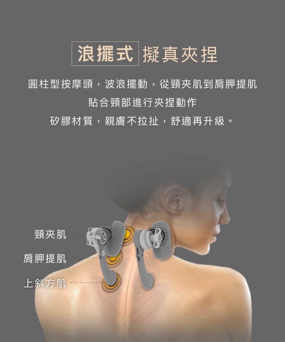 ◆加壓手拉帶,加強穴位感受◆傳導兩段溫熱變化◆擬真捏夾、按壓點位