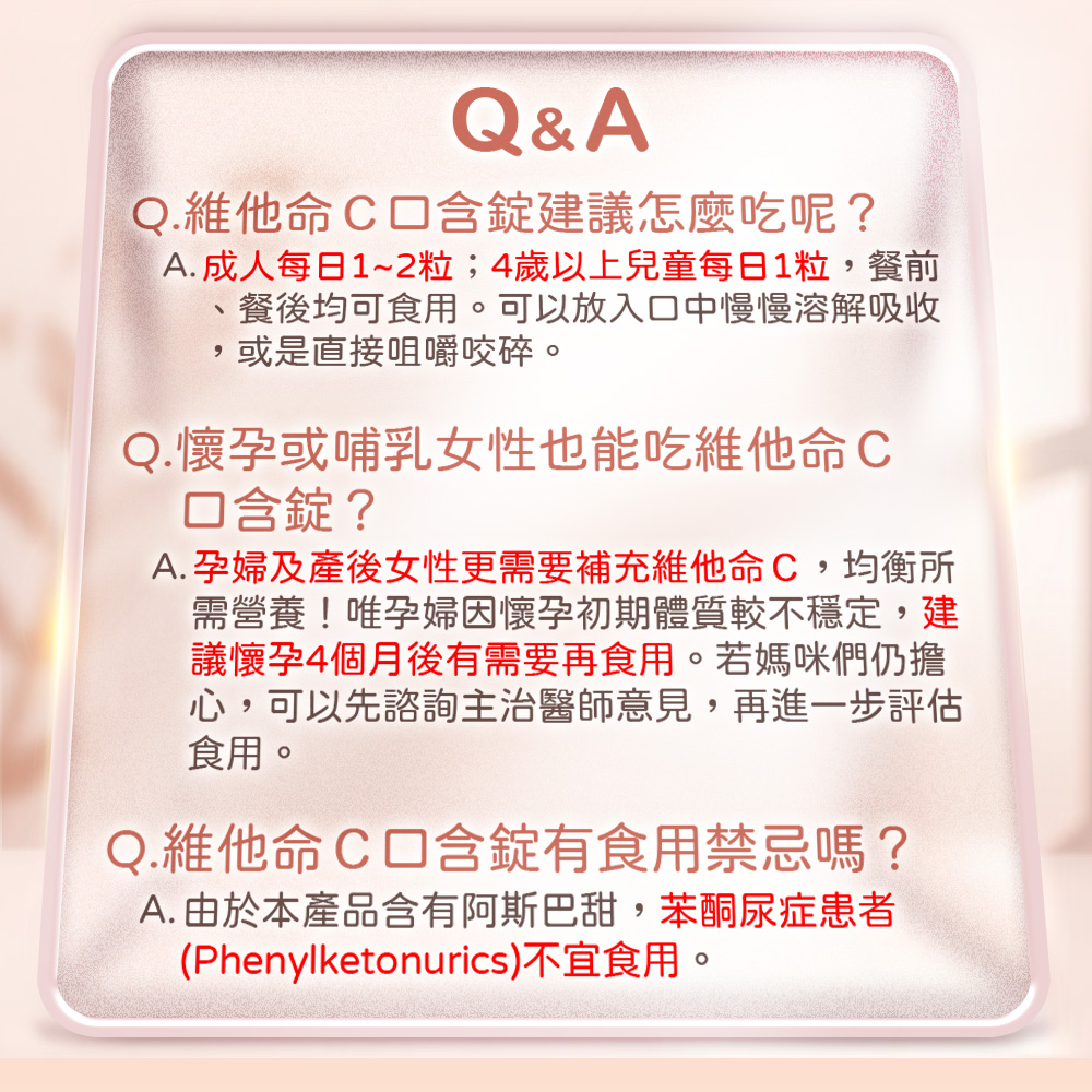 📌食用方式:直接含於口中溶解吸收。成人每日1~2粒,一日請勿超過2粒;4歲以上兒童每日1粒,一日請勿超過1粒,多食無益。
