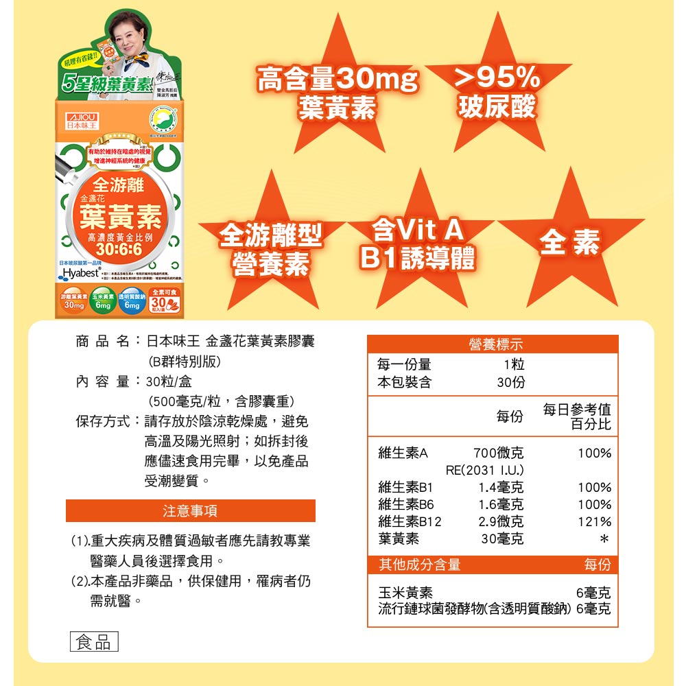 日本味王 金盞花葉黃素膠囊(B群特別版)