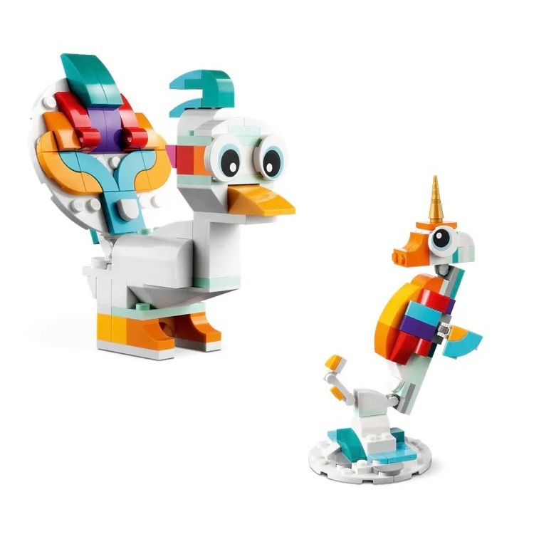 這款 3 合 1 魔幻獨角獸(31140)拼砌盒組將 7 歲以上、想像力豐富的孩子送到神話世界,享受迷人樂趣。獨角獸玩具,包含金色的角、色彩繽紛的尾巴,以及可擺姿勢的腿與蹄3 種動物均有可擺姿勢的身體部位:獨角獸的腿與蹄可動;海馬的尾巴、鰭與頭部可動;孔雀的尾巴與眼睛可動彩虹底座上的獨角獸、海底底座上的海馬玩具,以及用 2 條腿站立的玩具孔雀均可輕鬆展示145 片裝的盒組,魔幻獨角獸直立高逾 13 公分