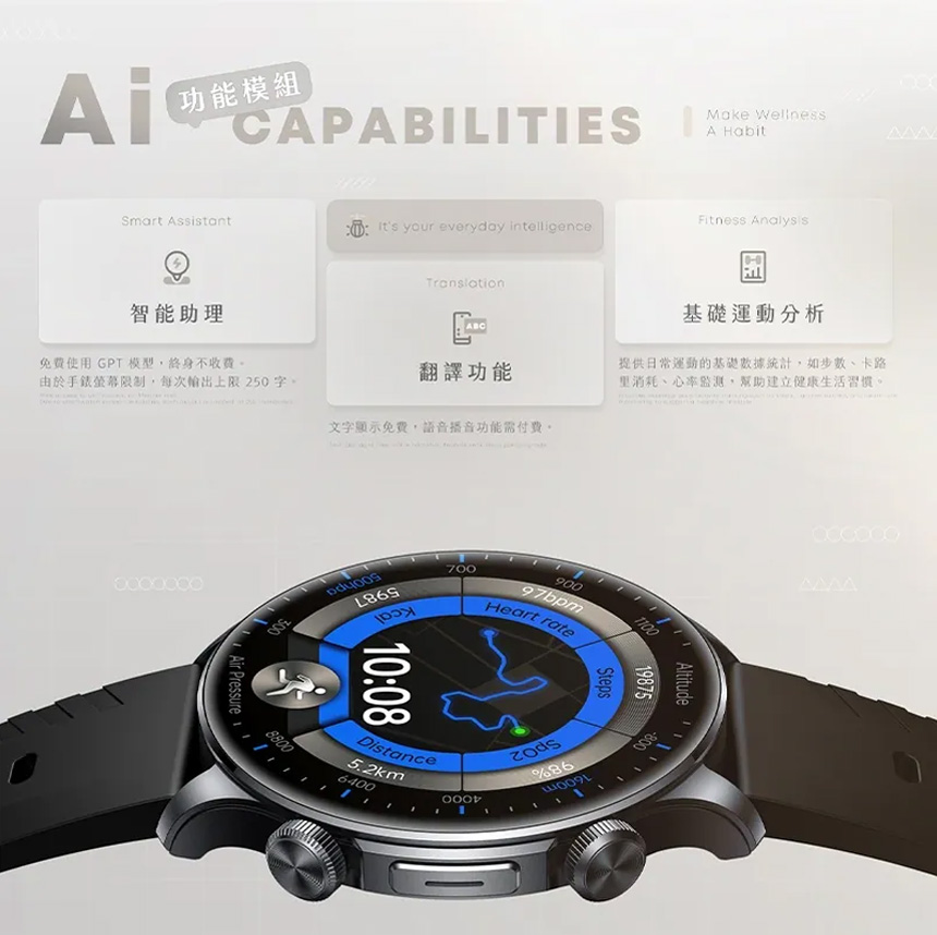 內建 ChatGPT 智能系統,讓手錶不只是工具,更是你的思考夥伴。