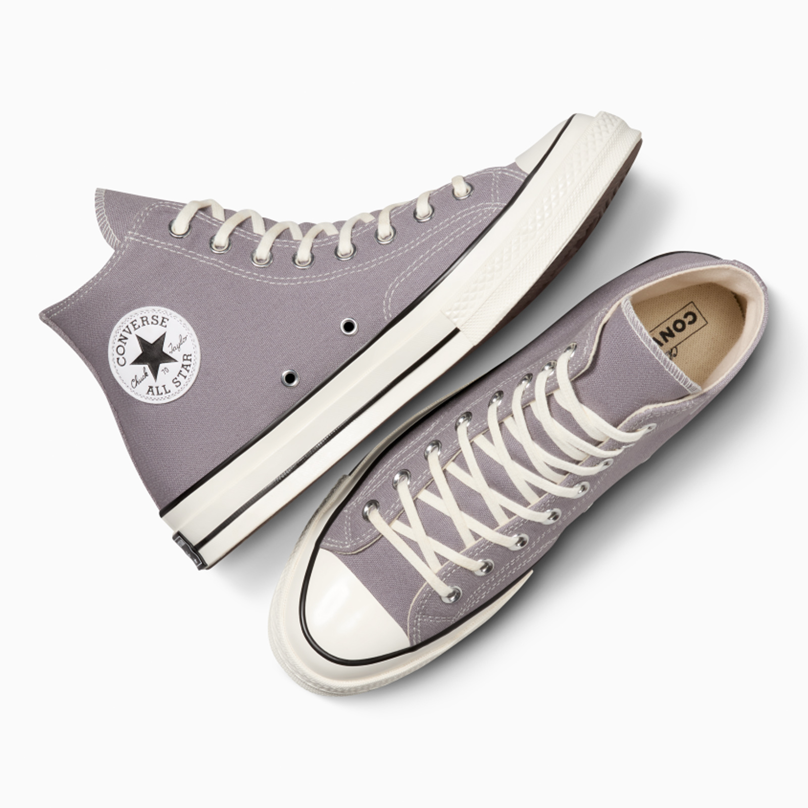 品牌: CONVERSE型號: A10525C品名: Chuck 70 HI版型: 版型正常* 1970使用較為復古的奶油底,且在楦頭前方多添加縫線,使雙足擁有更好的包覆效果。
