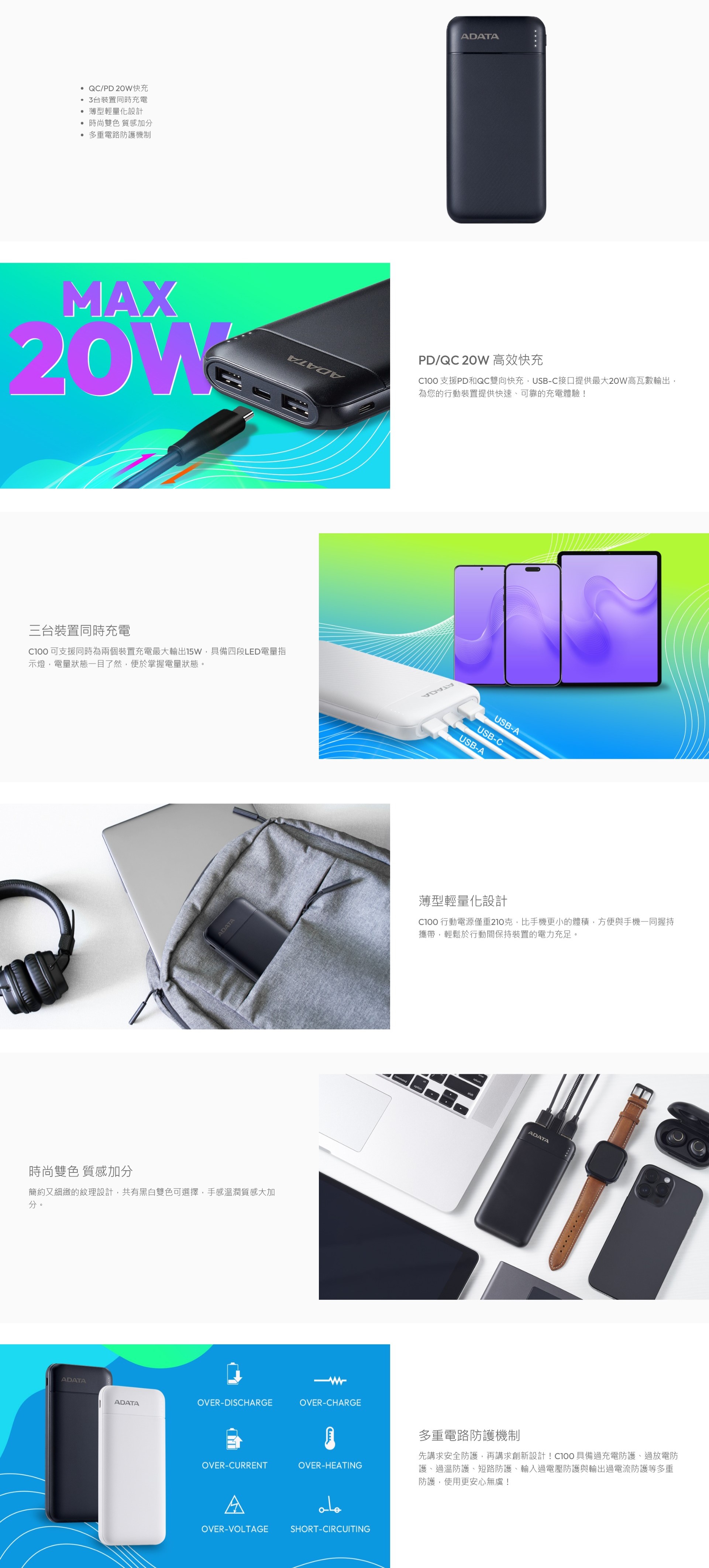 1) 合物電池產品,額定容量數值會因環境溫度、測試條件及方法略有差異,ADATA 所標註額定容量數值皆是由第三方公正單位測試認定。(因電池特性,電池可用電量會隨著使用次數增加而逐步減少)2) 使用 ADATA 行動電源為 USB-C 裝置充電,請使用該裝置原廠配附的連接線材,以獲得穩定的充電效能。3) iPhone 15 出現反向充電問題的主要原因是行動電源的USB-C 介面具有雙向設計(輸入和輸出)。根據蘋果的官方聲明,iPhone 15 系列的USB-C 提供4.5W 的反向充電,使iPhone 可以作為其他裝置的臨時移動電源。請嘗試以下方法解決此問題:重新連接充電線。在連接iPhone 15 之前,使用行動電源的電源按鈕啟動行動電源。確保行動電源的電量水平高於iPhone 15 的電量水平。使用行動電源的USB-A 充電接口而非使用USB-A 至C 為iPhone 15 充電(使用USB-A 至C 不會觸發反向充電問題)。
