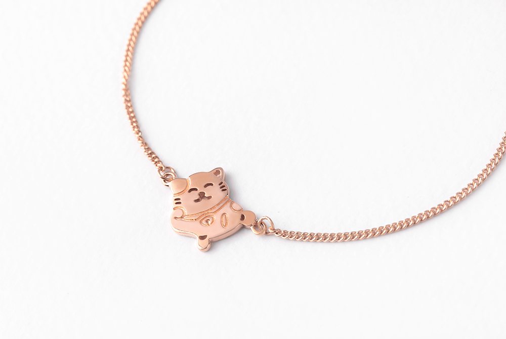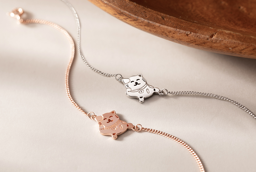 柔和光澤中,貓咪靈巧守護,一抹幸運,悄然停駐於腕間。簡單卻滿載祝福,為日常增添一份可愛與富足。