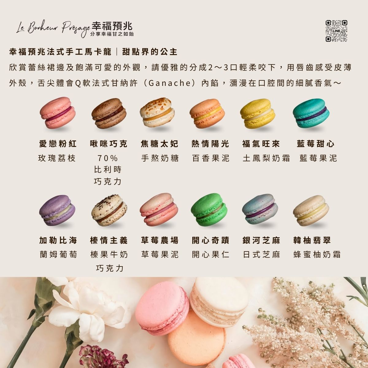 馬卡龍尺寸:約直徑 4.5cm,高度 3.5cm(手工烘焙,尺寸略有差異屬正常現象)