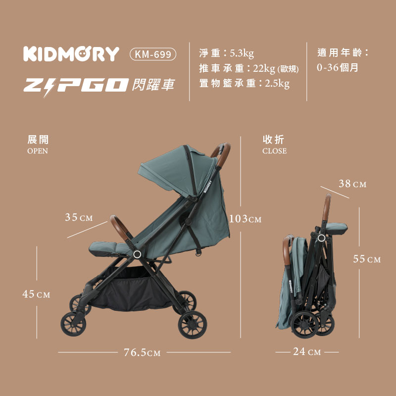 【KIDMORY】 ZipGO 閃躍瞬收嬰兒推車 KM-699 (一鍵收車/磁吸安全帶/超大置物空間)