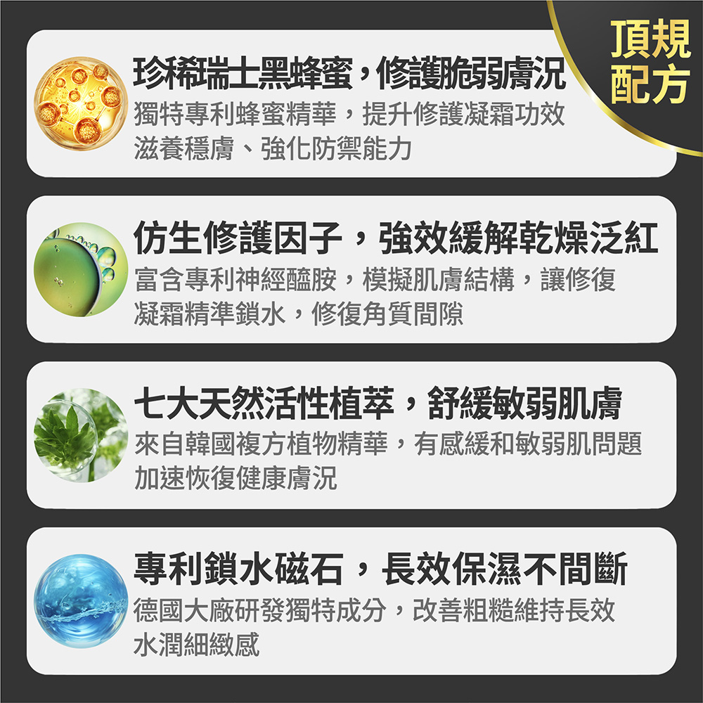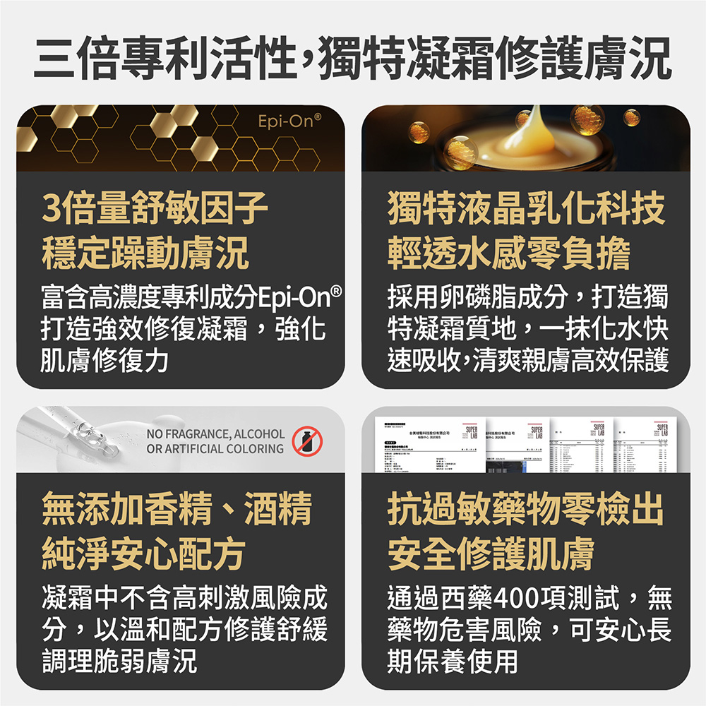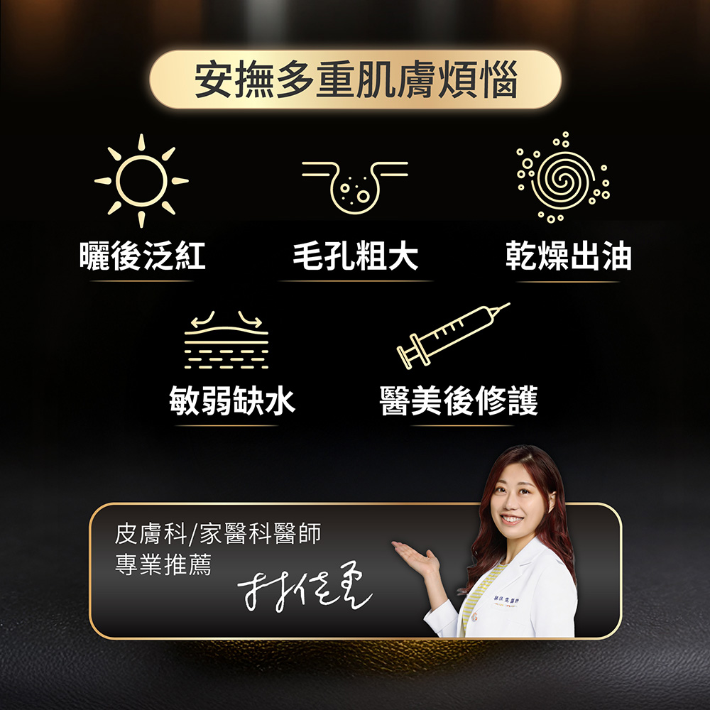 添加三倍濃度皮膚科醫師認證術後使用的【專利舒緩因子】,獨家特殊清爽質地,搭配專利成分玉米萃取,有感提升肌膚彈潤度。