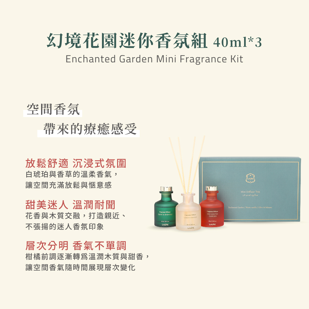 新春好運禮【Laline】幻境花園迷你香氛禮盒 40ml(3瓶)|幻境花園、日光香草、橄欖巴巴蘇三款人氣香氣,依心情自由切換 | NearMe | 線上送禮平台『獨家支援 收禮者改選禮物』