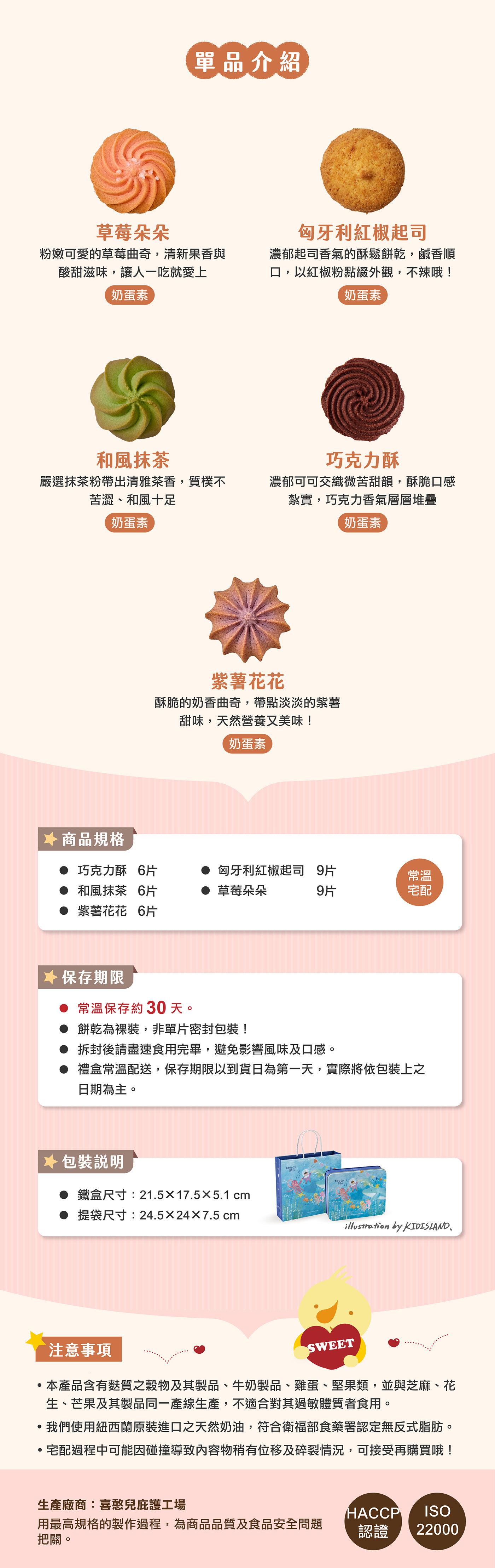 ✦週日宅配停止收送服務,恕無法指定週日、週一送達✦運送過程中可能因碰撞導致餅乾稍有位移或碎裂情況 ,可接受再購買✦不提供外島配送服務