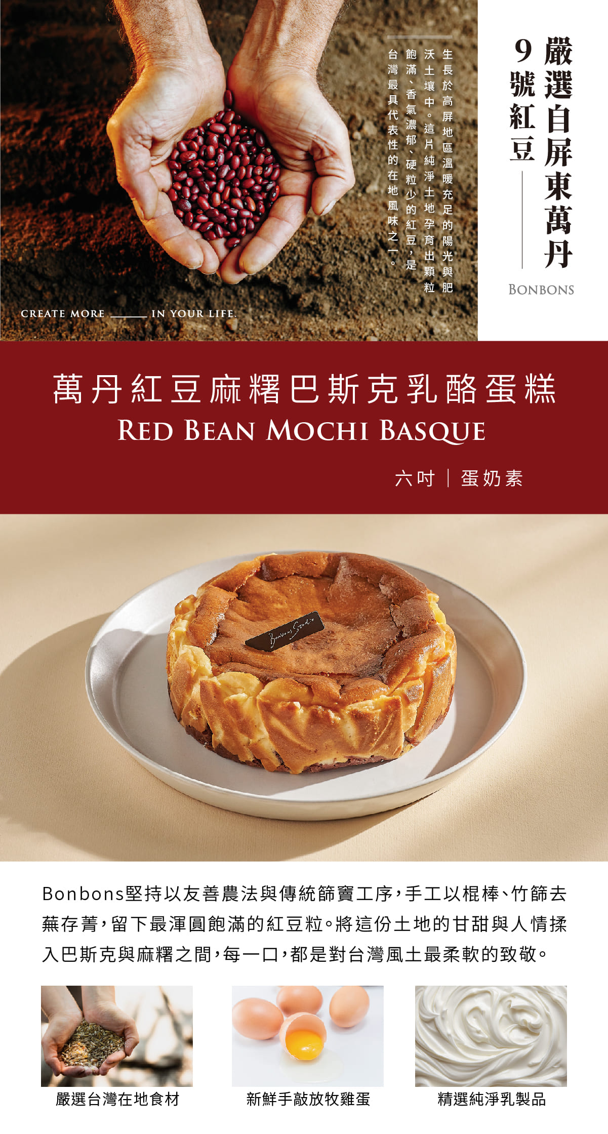 【Bonbons甜點】2024國產紅豆烘焙競賽!屏東萬丹紅豆麻糬巴斯克(6吋) | NearMe | 線上送禮平台『獨家支援 收禮者改選禮物』