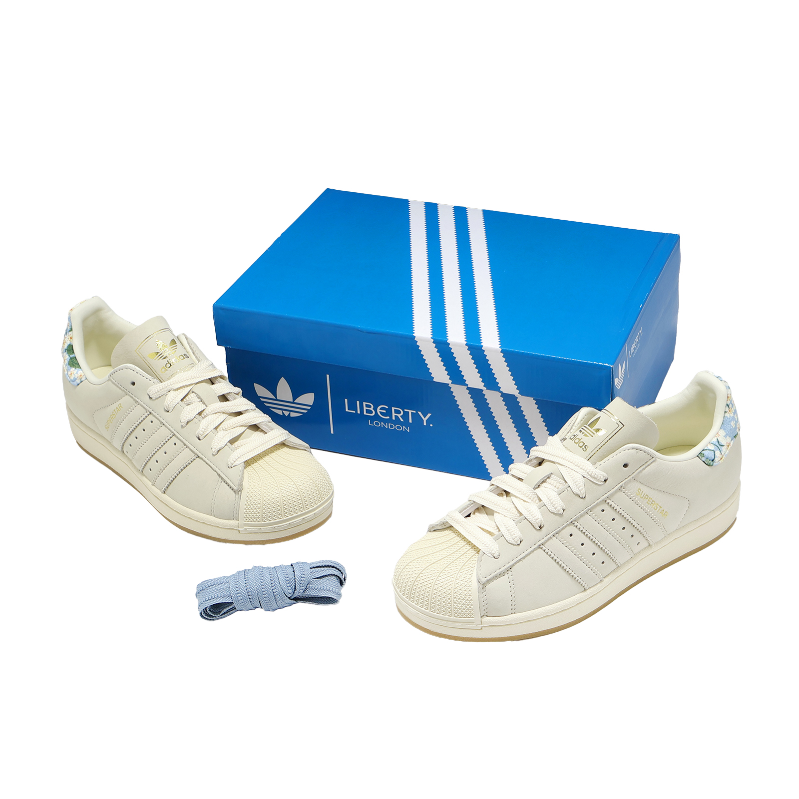 品牌: ADIDAS型號: JR8865品名: Superstar II W版型: 版型偏大, 建議小半號* 與 Liberty London 聯名設計款,後跟拉環裝飾有經典 Liberty 花卉圖案,包括旋轉的葉子和小巧精美的櫻花,重新混合現代風格元素。