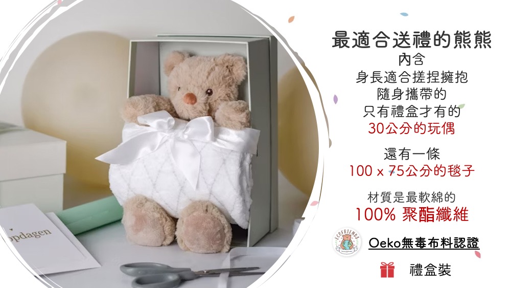 2024年Teddykompaniet推出的小熊Sven,以30公分小熊搭配 75x100 cm柔軟毯子組成限定禮盒,完美成為寶貝的成長夥伴!採用 OEKO-TEX認證 的無毒低敏絨毛布料,觸感如雲般柔軟,親膚又安全。奶茶色設計不易髒,可機器清洗,清潔輕鬆無憂。