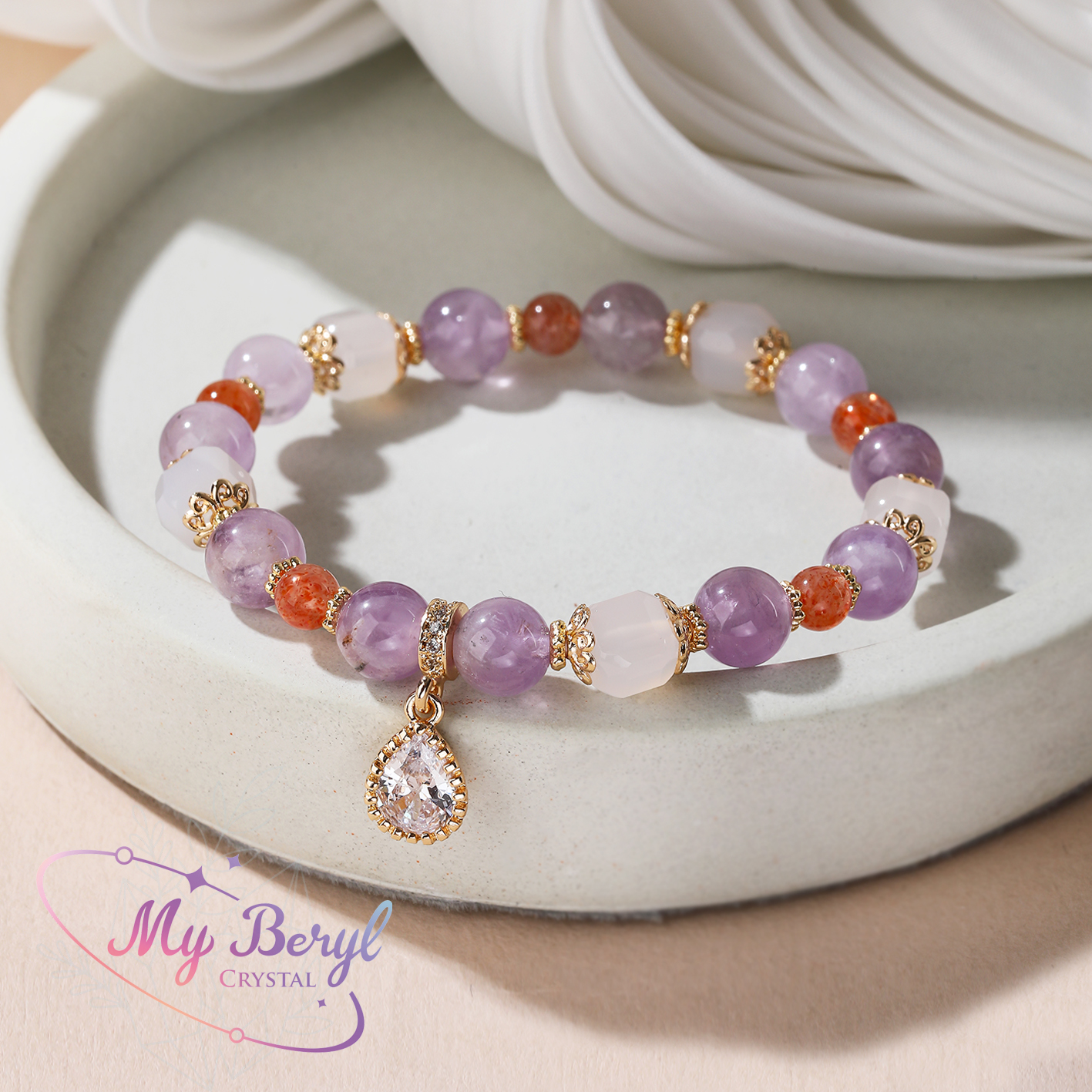 這款結合了薰衣草紫水晶、紫玉髓與金太陽石的設計