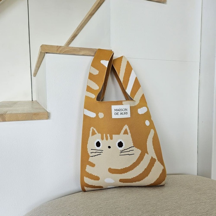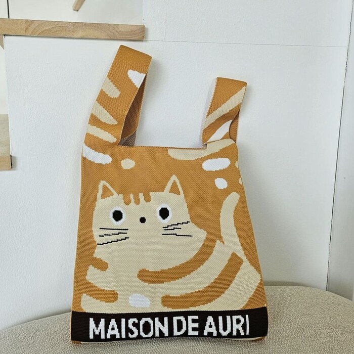 帶著一絲微垂眼神的小黑貓半露出頭,在期待著什麼呢?彷彿你帶著獨有神秘故事,成為整體造型的焦點加上MAISON DE AURI 的品牌名稱編織在背面,獨特品味的展現