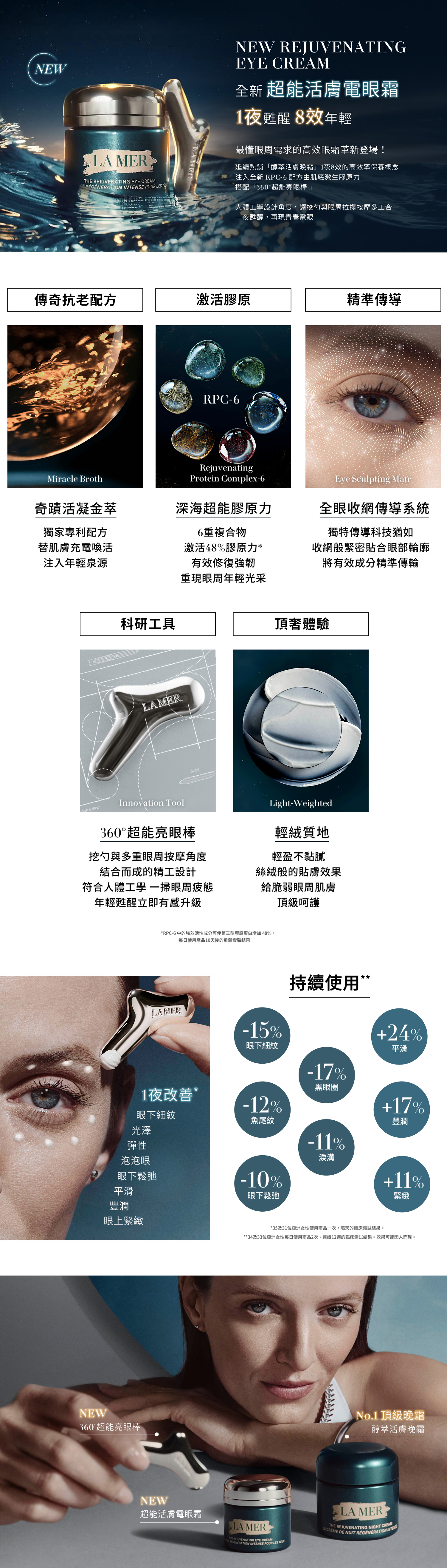 延續熱銷「醇萃活膚晚霜」1夜8效的高效率保養概念注入全新 RPC-6 配方由肌底激生膠原力搭配「360o超能亮眼棒 」