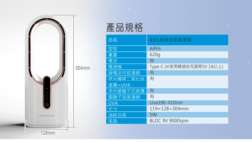 ◆商品尺寸:長119x寬128x高304mm◆商品重量:0.62kg◆商品材質:ABS◆輸入電壓:DC 5V/1A◆消耗功率:5W◆電源線:Type-C◆產地:台灣◆國際條碼:4712364179655◆BSMI商品檢驗:免驗◆保固:正常使用下保固1年