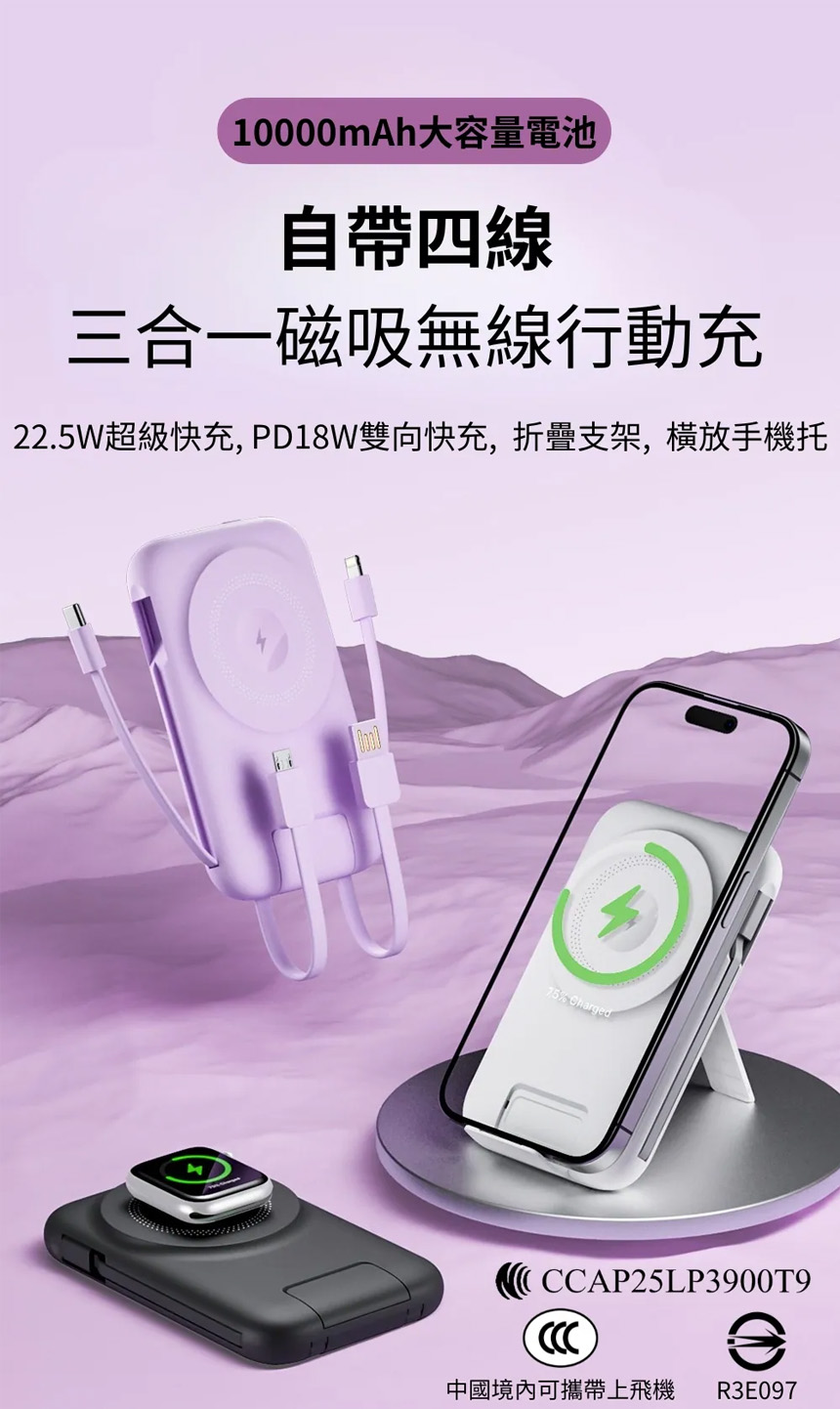👉 磁吸無線充電:手機、耳機、手錶,輕鬆一吸即充。