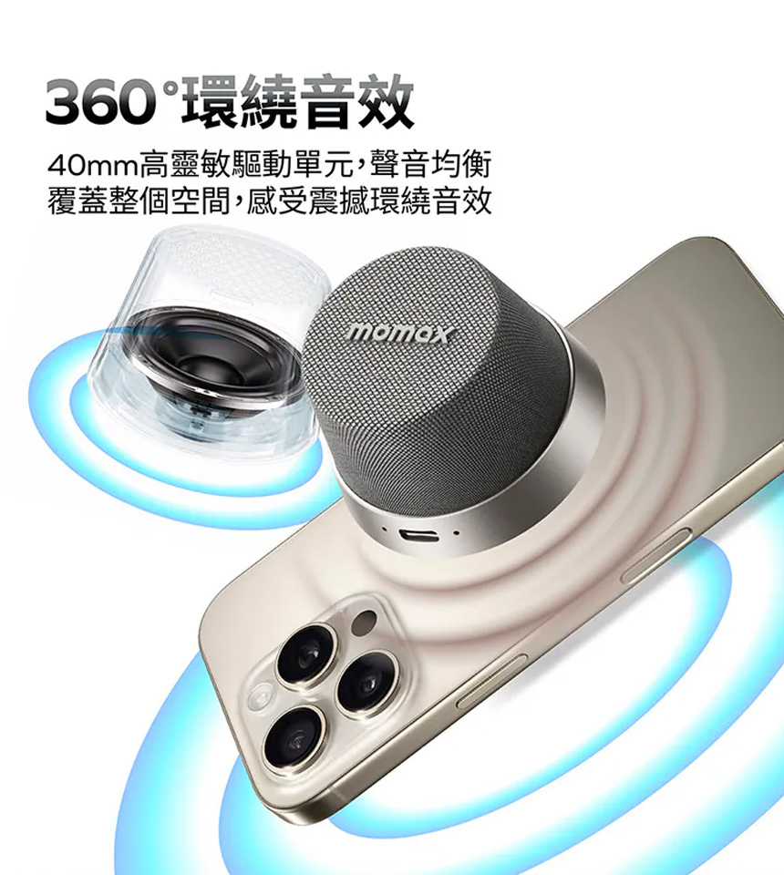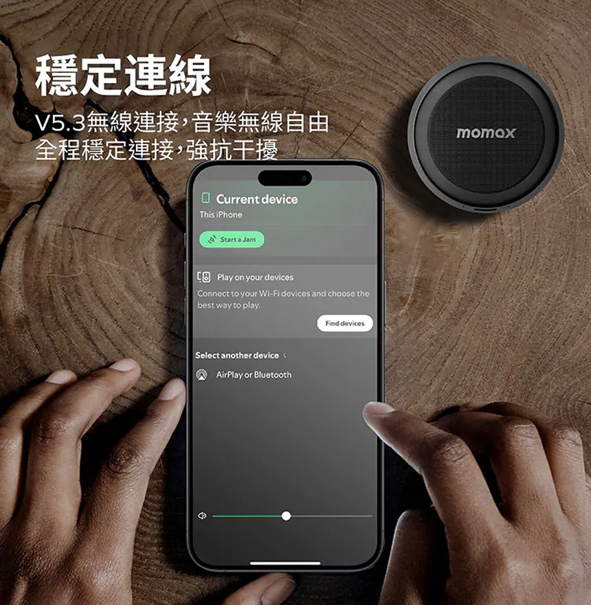 隆重介紹 Momax 1-Vibe Go 磁吸無線音箱。專為輕鬆的性能和多功能性而設計,無論室內或戶外皆適用。