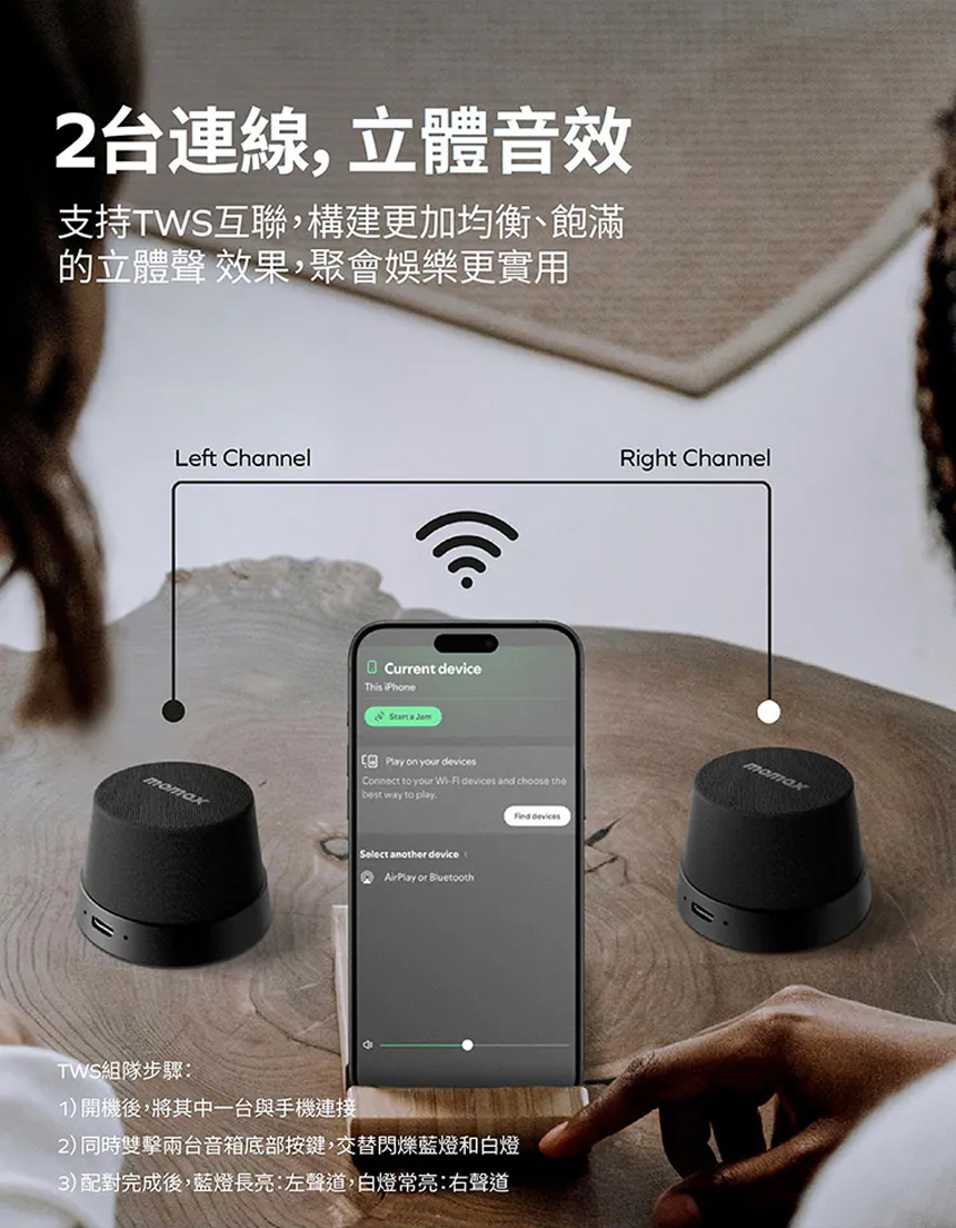 支援雙喇叭無線串聯,沉浸在環繞的立體聲音效中,讓聽覺享受再升級。