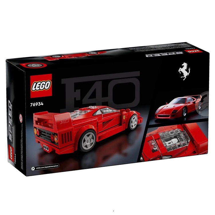 F40 專為歡慶該經典義大利車廠 40 週年紀念,而這款積木有許多來自實車的著名設計細節包含 F40 的經典後擾流板、車頭、排氣管、輪圈、進氣口特色有儀表板、手煞車、排檔桿、紅色座椅和方向盤的內部還配有 1 隻 Ferrari 賽車手人偶,可讓孩子放上駕駛座