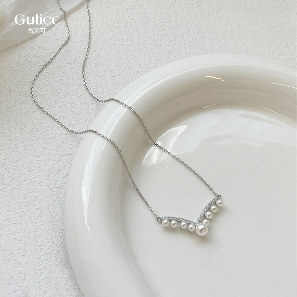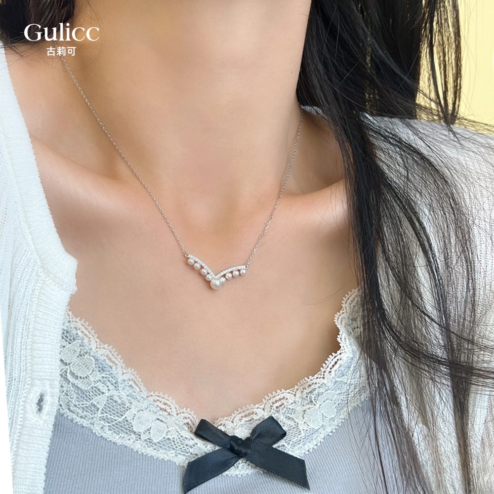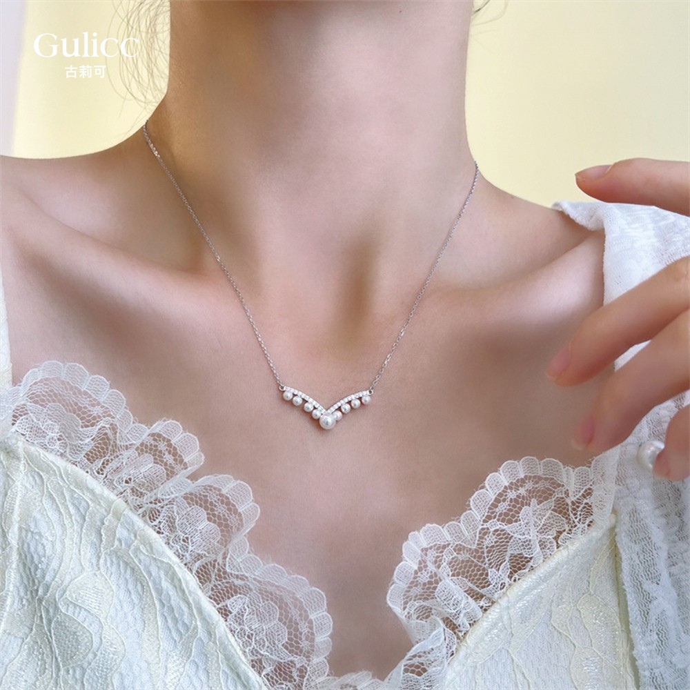 〔快速出貨〕【Gulicc】微鑲方晶V型性感珍珠項鍊 | NearMe | 線上送禮平台『獨家支援 收禮者改選禮物』