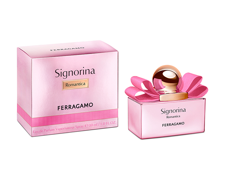 外觀設計,Signorina Romantica浪漫伊人女性淡香精 延續了系列標誌性的精緻瓶身,點綴著代表品牌精神的Vara 緞帶蝴蝶結 。此次瓶身更換上了亮眼的「金屬粉紅鏡面」,散發出青春活力與無限可能,將 FERRAGAMO 菲拉格慕獨有的工藝與時尚風格發揮得淋漓盡致 。