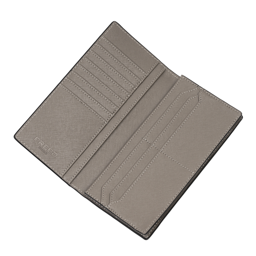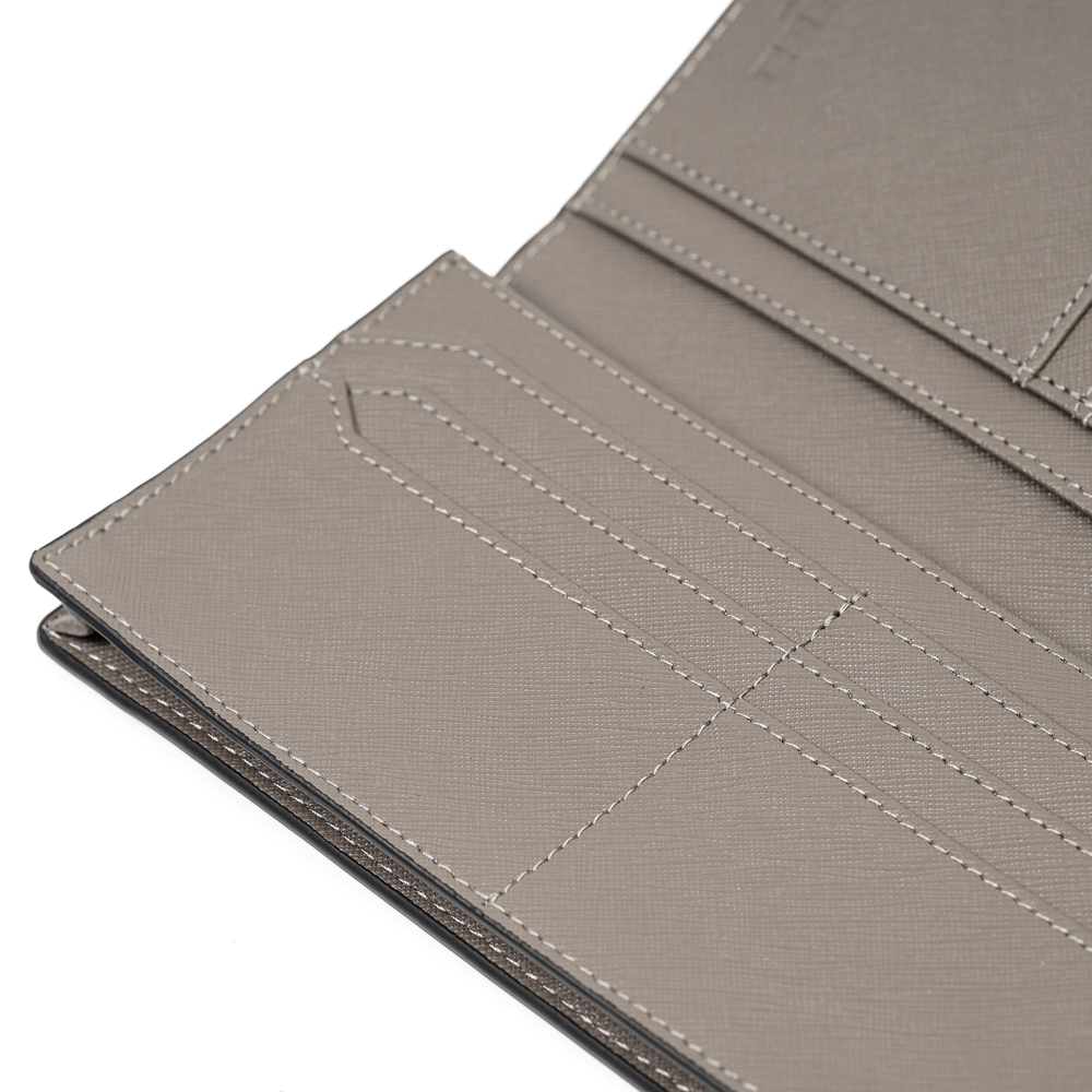 俐落大器的質感設計,這款長夾以經典 Saffiano 十字壓紋真皮打造,兼具優雅外型與強大收納機能。內部配置多達 14 個卡槽與多層分隔,無論票據、紙鈔或零錢都能井然有序地收納,是商務與日常的專業之選。
