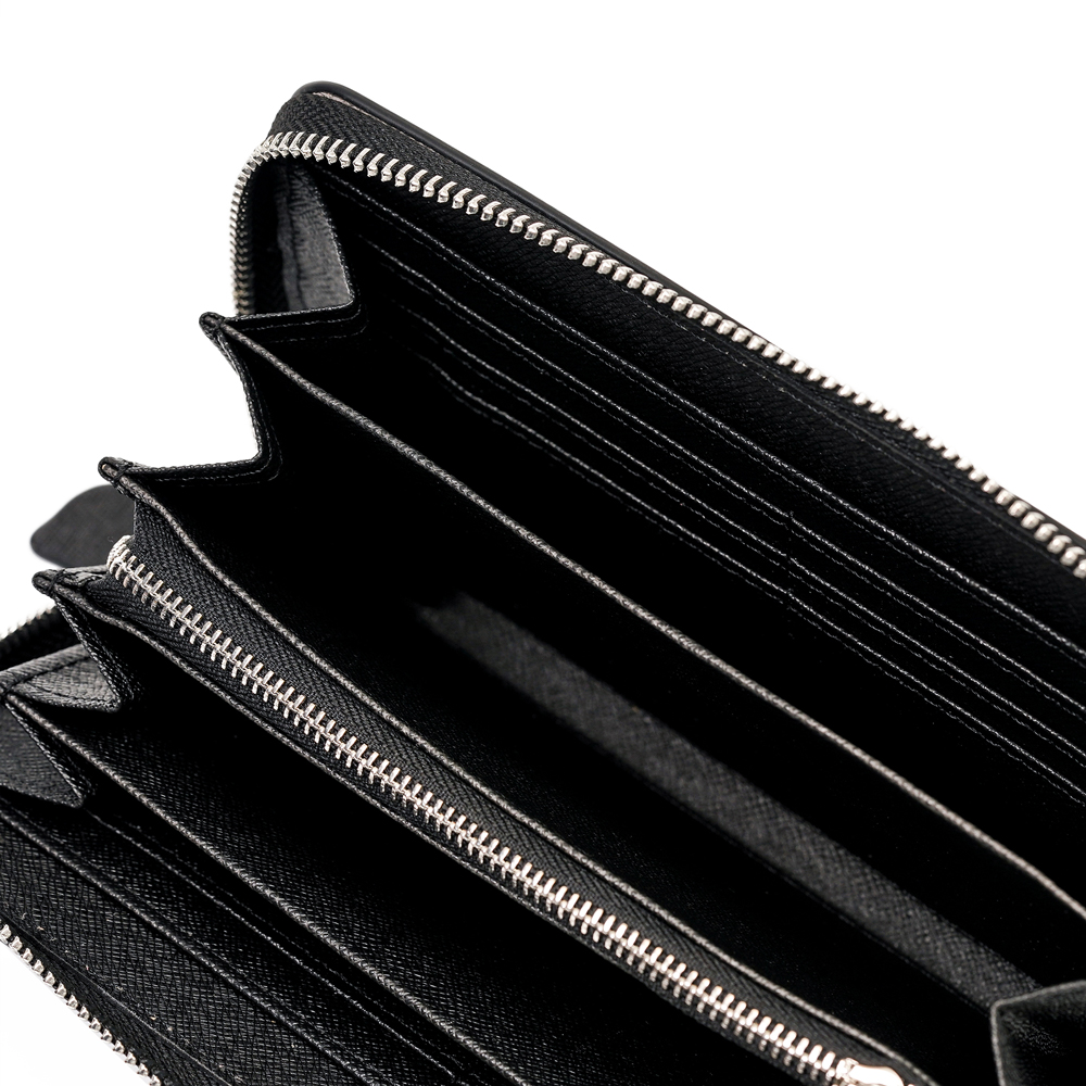 全拉鍊式的大開口設計,完美包覆內部豐富的收納隔層。無論是大量的信用卡、多國紙鈔或是細碎零錢,都能透過精細的空間規劃整齊歸位,展現您在細節處的井然有序與專業品味。