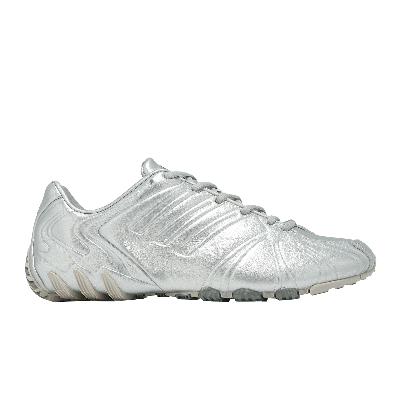 * 將 2000 年代競速田徑鞋概念重新修飾,契合當前流行的薄底(Flat shoes)趨勢,兼具視覺速度感與質感。