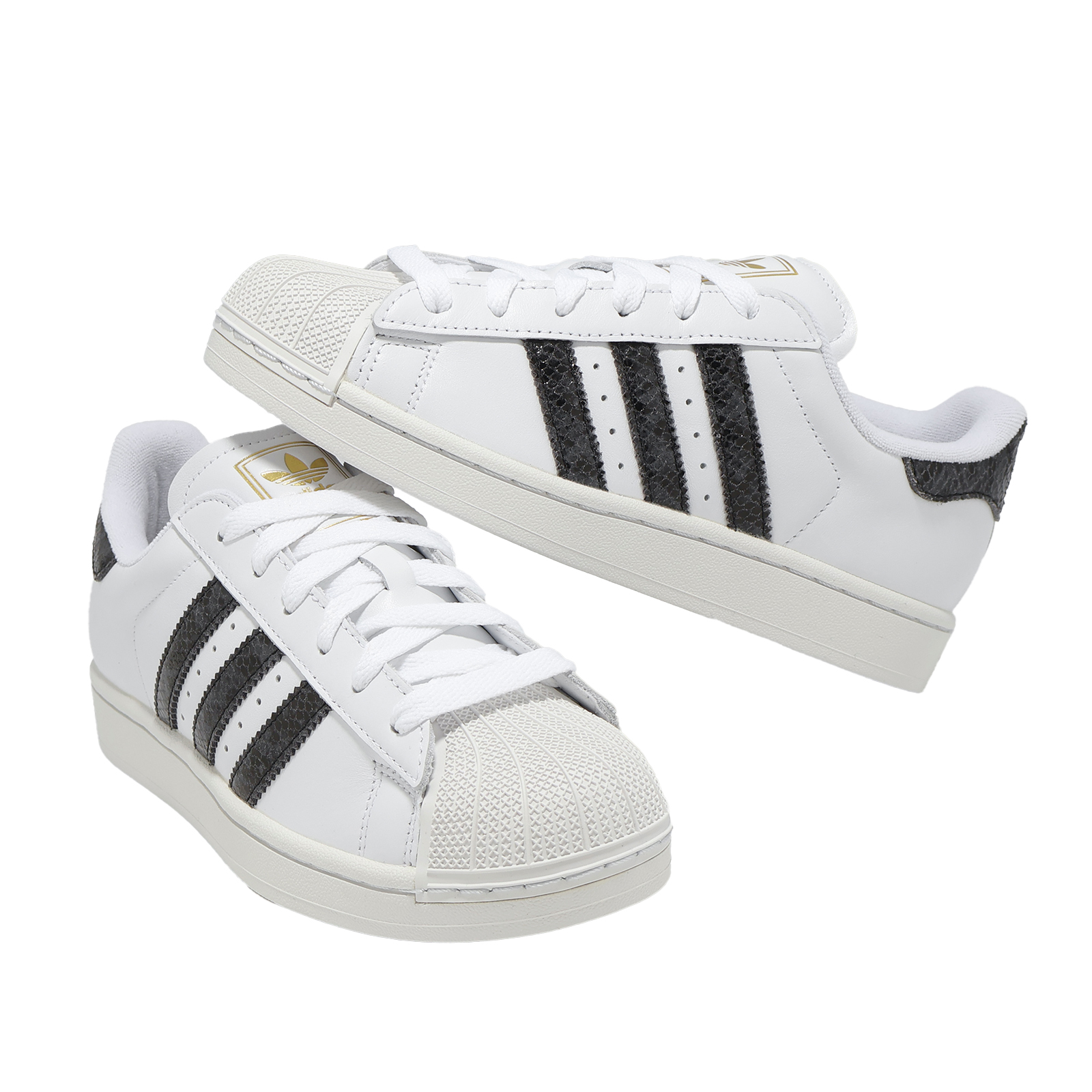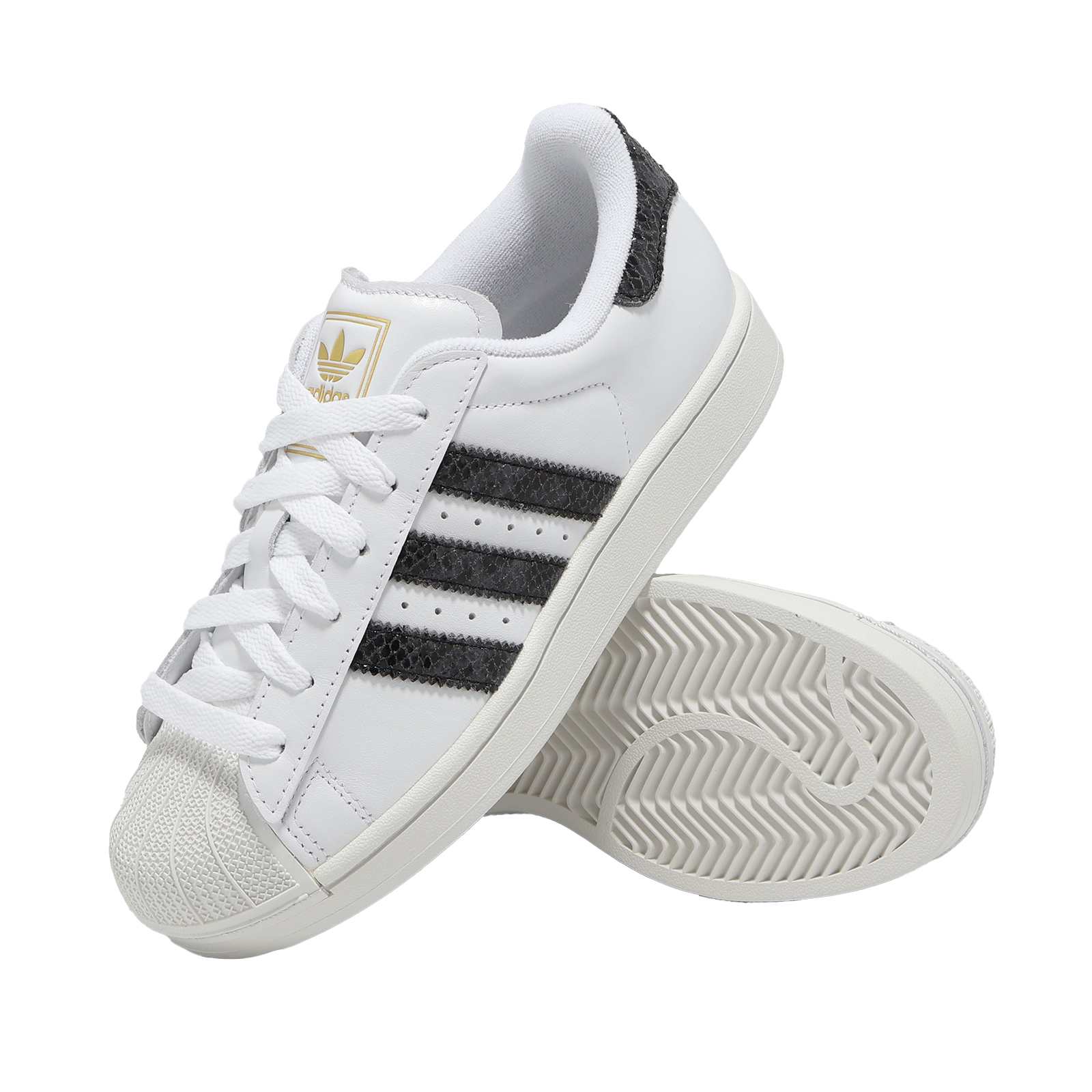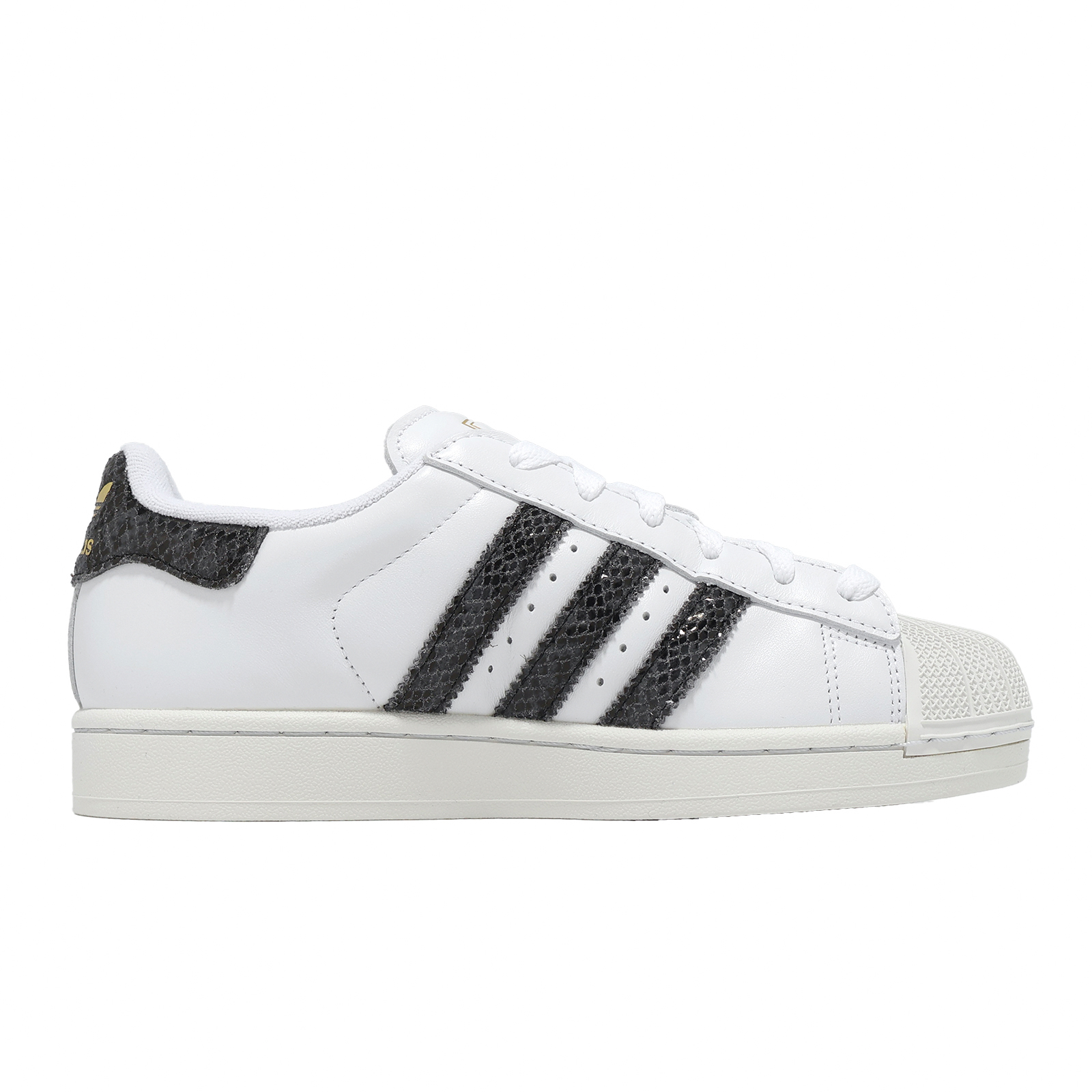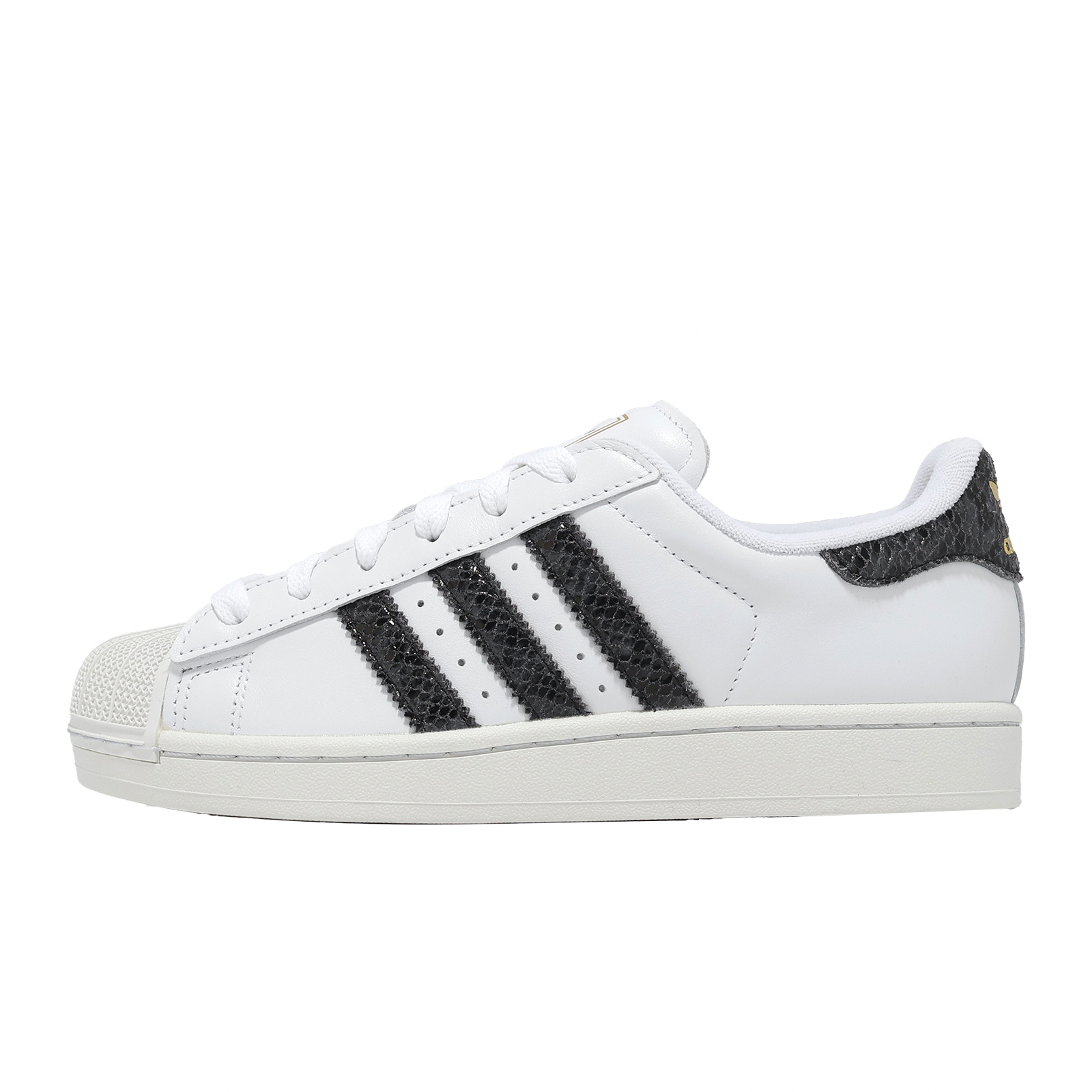 * 採用合成材質和皮革鞋面製成,兼具耐用性和時尚性,後跟拉環上的三葉草 logo 和三條線品牌標誌增添了一絲傳統氣息,側面的 Superstar 標誌則打造出完美的經典外觀。