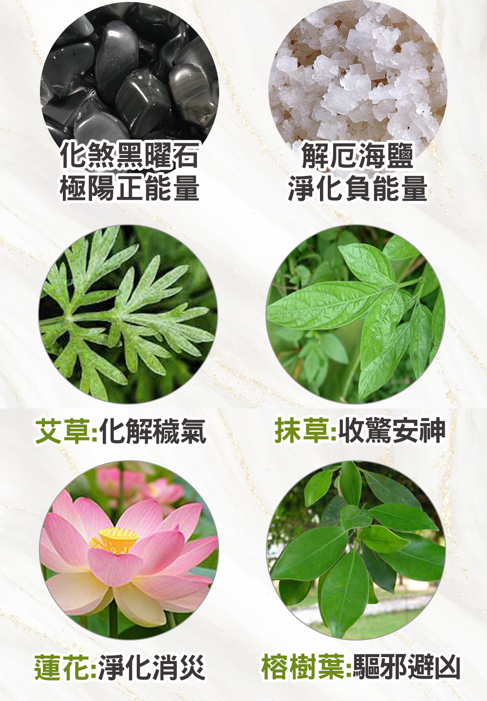 升級配方2◆在原有神級四大除穢草本(艾草/抹草/榕樹葉/蓮花)的基礎上,特別提升「艾草」比例 10%,讓除穢效果更加有感!
