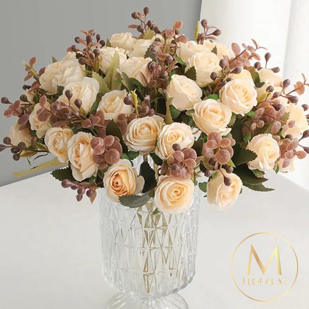 快速出貨🌷家居造景【Floral M】法式復古玫瑰小花園奶油黃仿真花花材(1入組) | NearMe | 線上送禮平台『獨家支援 收禮者改選禮物』