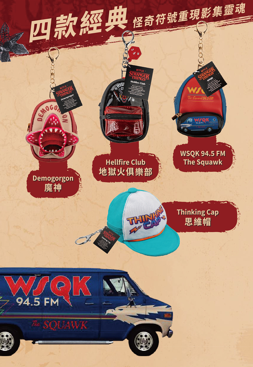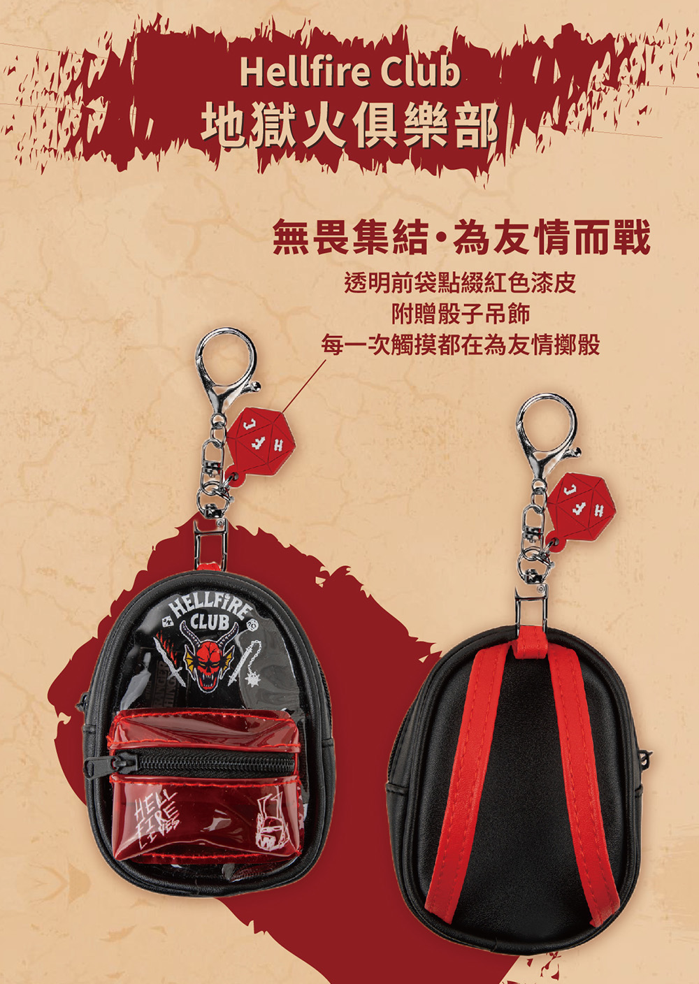 ◆ 官方授權| 限量收藏級質感,法國設計工藝,Cinereplicas(電影共和國)出品!◆ Stranger Things 正版周邊| 把霍金斯的傳奇掛在身上,怪奇粉不容錯過!◆ 迷你背包造型收納包|拉鍊開合,小物隨手收(適合零錢/AirPods等)!◆ 四款經典主題|魔神/地獄火俱樂部/WSQK/思考帽一次收藏!