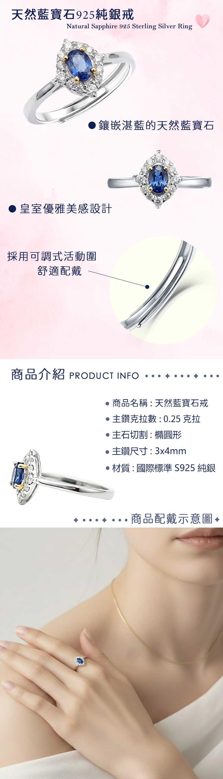 材質:天然藍寶石 / 925純銀