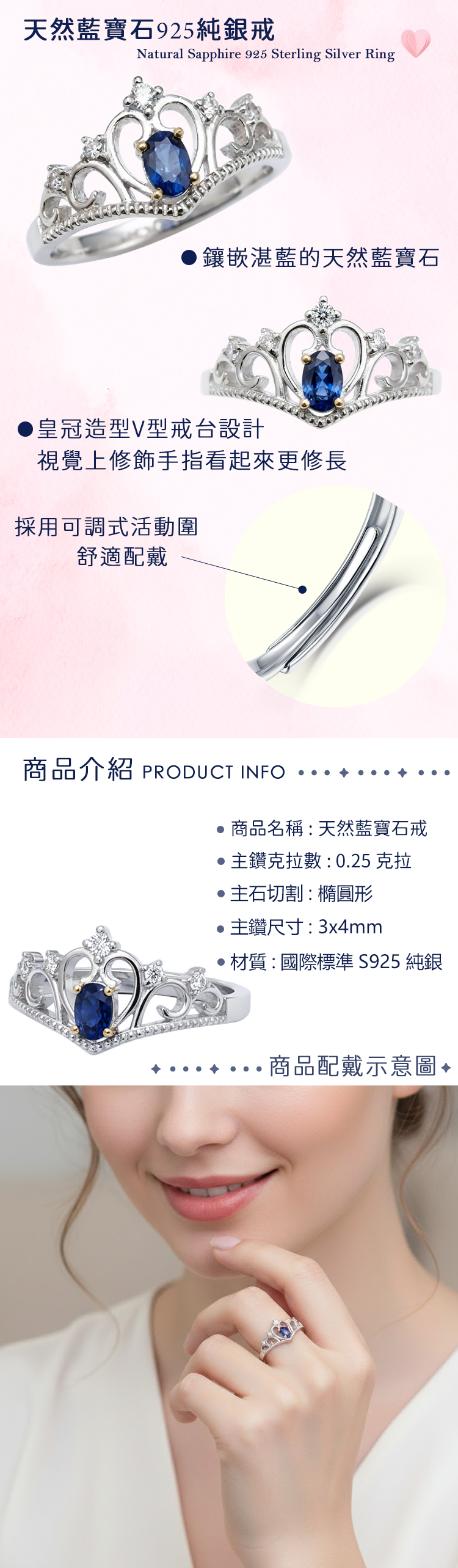 名稱:《湛藍星冕》天然藍寶石25分女戒
