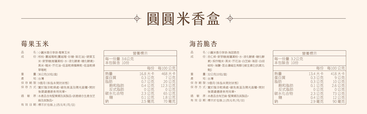 ・規格:粹蛋捲x1+奶藍米香x1+品牌小提袋