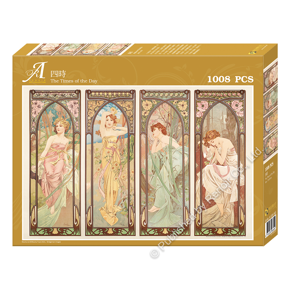 慕夏於1899年創作自左而右依序為清晨、白晝、黃昏與夜晚。慕夏將一天之中的時間順序擬人化,清晨的女子輕盈漫步從森林裡悠悠走出,身穿古希臘女神樣式的輕紗服,透視著女性柔美的線條與身形,予人一股清新的晨間氣息;白晝裡女子莊嚴卻不失優雅的神情與象徵欣欣向榮的太陽花,背景湛藍的天空和清澈的湖水相映,予人精神抖擻充滿生氣的感受;而黃昏裡女子神情嬌媚地側著身子倚在樹枝上,望著遠方,在夜幕低垂的背景裡,有如正在等待的女子,黃昏的暮色投射在女子微掩的側臉,顯得更惹人憐愛;寧靜迷人的夜晚裡,女子枕手而睡,曼妙柔美的身軀如同沉睡的美人,予人純淨單純的想像,而女子輕閉的雙眼更是顯現出夜晚寂靜的氛圍。