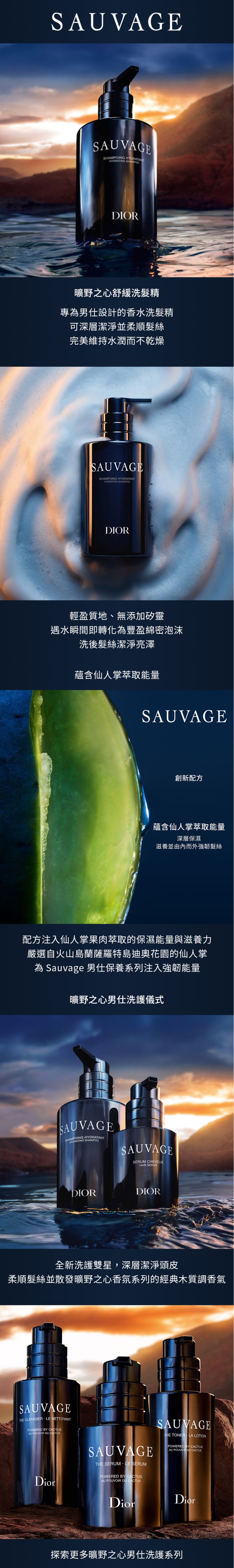 《迪奧曠野之心舒緩洗髮精》專為男仕設計的香水洗髮精,可深層潔淨並柔順髮絲,完美維持水潤而不乾燥。帶來清新舒爽的感官體驗,同時深層保濕、滋養並由內而外強韌髮絲。 配方注入仙人掌果肉萃取的保濕能量與滋養力,輕盈質地、無添加矽靈,遇水瞬間即轉化為豐盈綿密泡沫,洗後髮絲潔淨亮澤,並散發《Sauvage曠野之心》男性香氛系列經典木質香調。