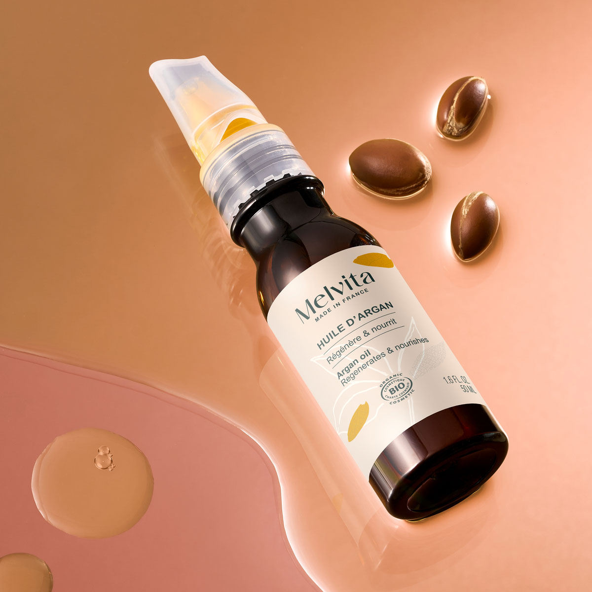 Melvita蜜葳特產品系列中極具獨特性的植物油,透過冷壓初榨法與浸泡法方式,取得植物種子、果實、根部與花瓣的活性成分,具有不同護膚功效。無添加人造色素、香料與化學防腐劑,可單獨使用或調和其他護膚品使用,有效修護臉部、身體及頭髮。