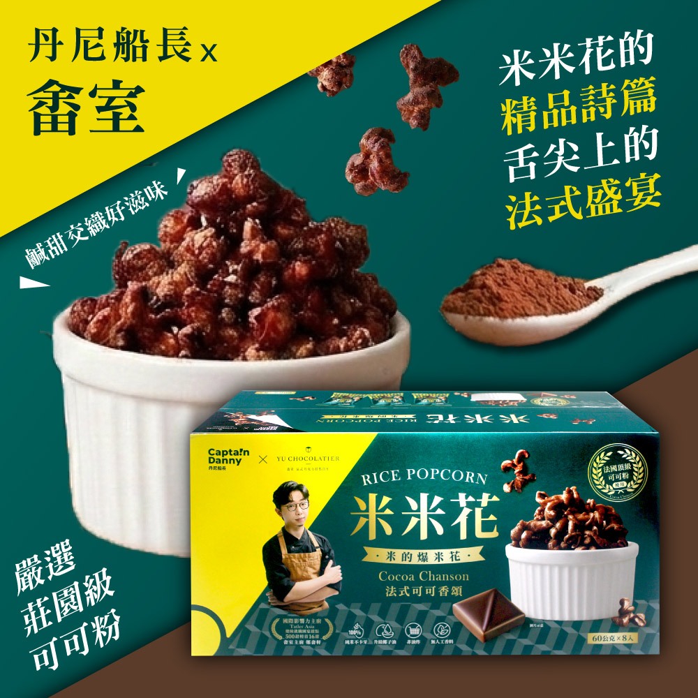 【Captain Danny 丹尼船長X 畬室】法式可可香頌米米花 (60公克 X 8包/盒)