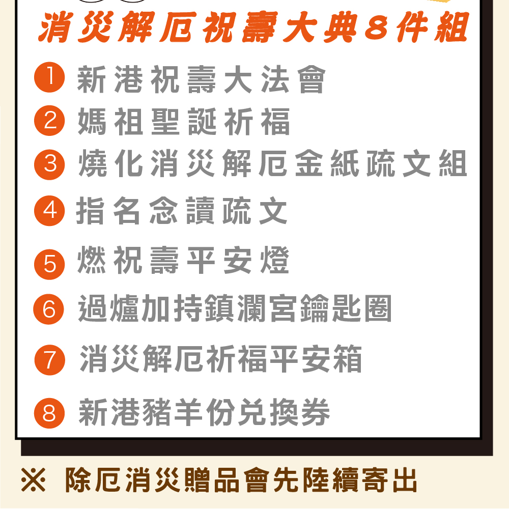 丙午遶境重頭戲:媽祖祝壽大典消災解厄大法會(免費登記豬羊份)購買此商品則報名完成「祝壽大典」大法會-含代燒消災解厄金紙一大份祝壽大典於遶境第4日早上7時於新港奉天宮舉行