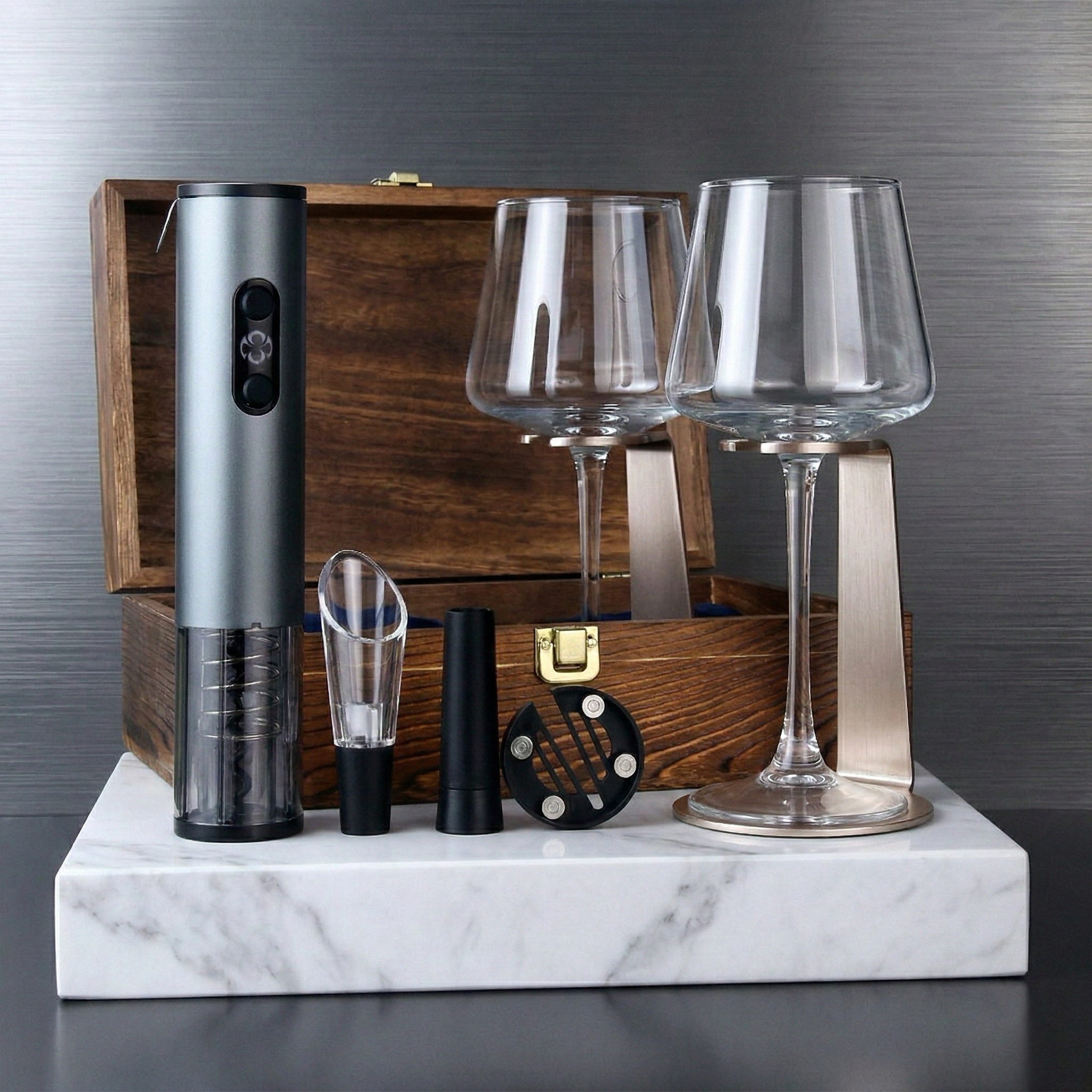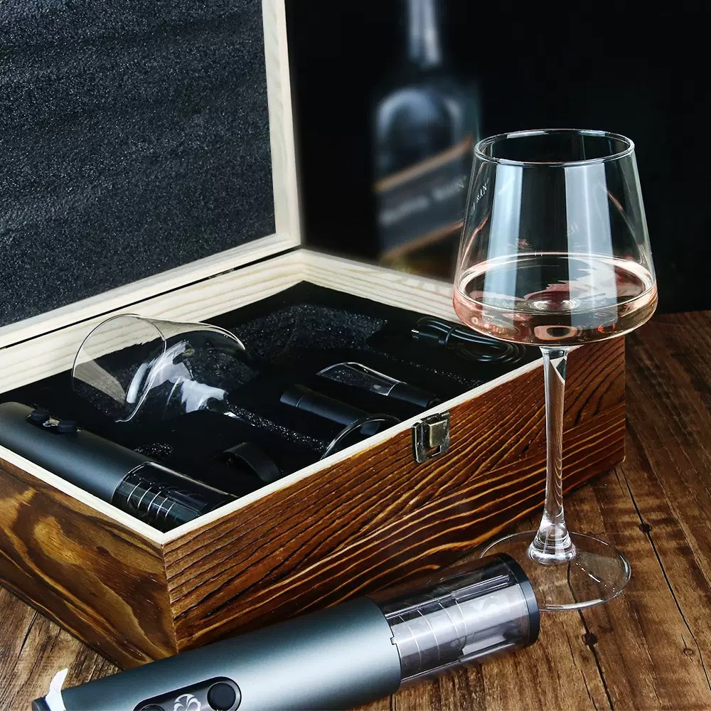4-IN-1電動開瓶器+紅/白酒杯 x 2 套裝木盒禮盒組