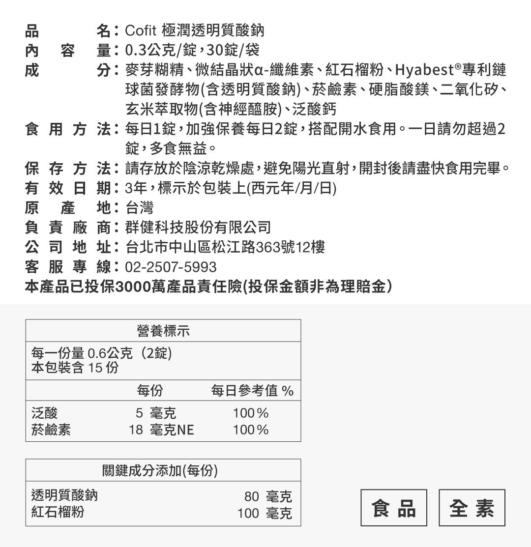 商品名: Cofit 極潤透明質酸鈉