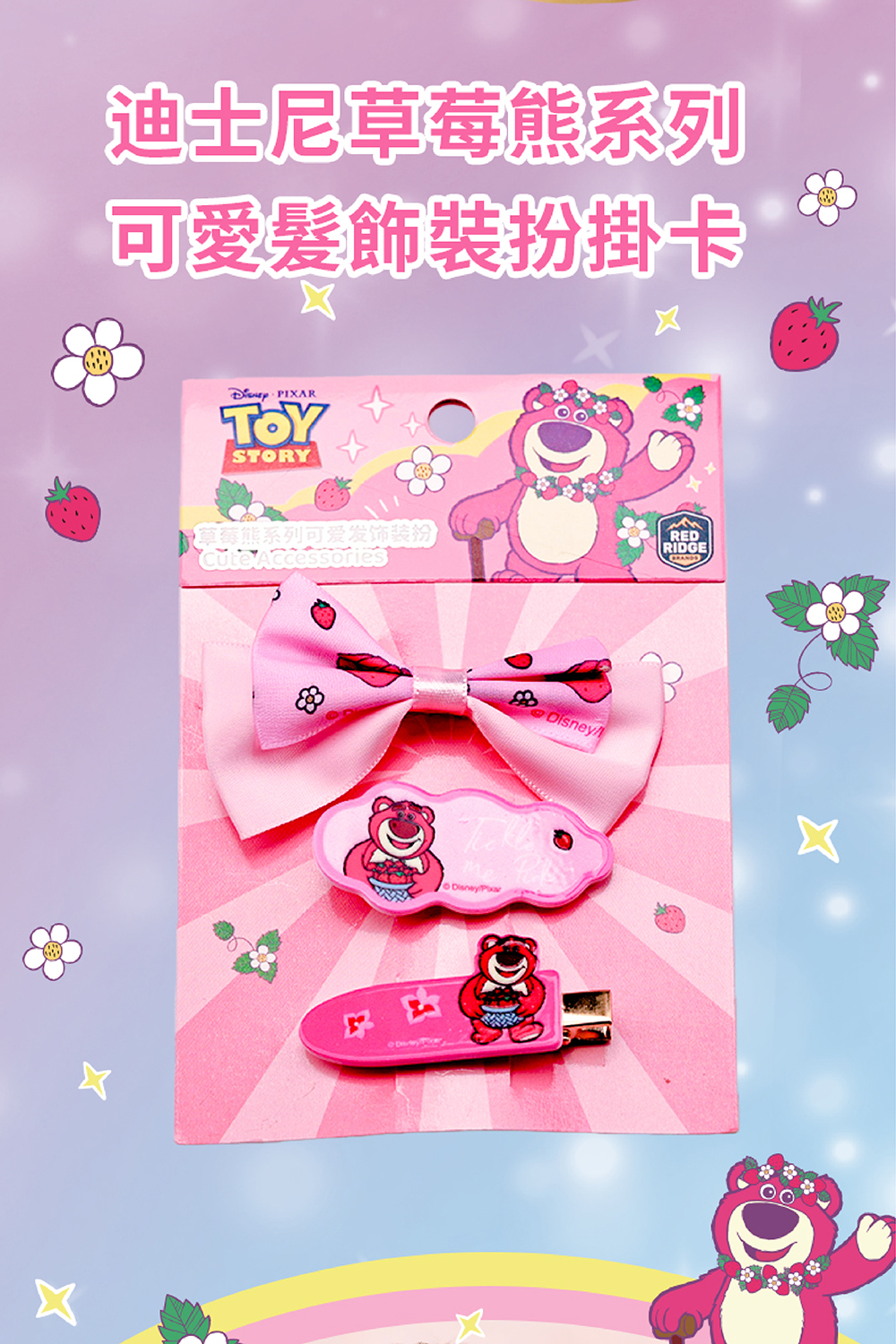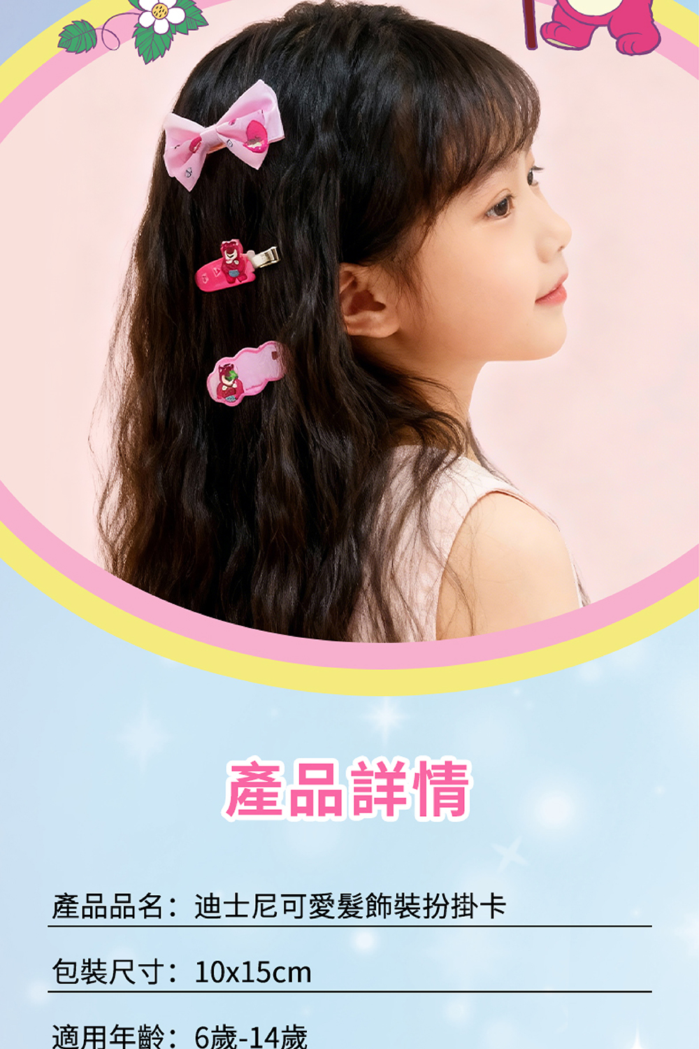 💡 商品特色✨ 官方授權角色造型,質感滿分,印刷清晰可愛,讓孩子一眼就愛上。✨ 多款式組合,一組即可完成造型,能輕鬆打造豐富又有層次的髮型。✨ 風格多元,滿足不同孩子喜好冰雪主題系列:閃亮雪花、冰晶寶石點綴,展現夢幻高雅氣質。草莓熊系列:粉嫩可愛、俏皮甜美。米妮系列:經典永不退流行。✨ 送禮首選,實用又有收藏價值,無論生日、派對或平日小驚喜,都非常適📏 商品規格商品名稱:迪士尼可愛髮飾裝扮掛卡包裝尺寸:10 × 15 cm適用年齡:6~14 歲