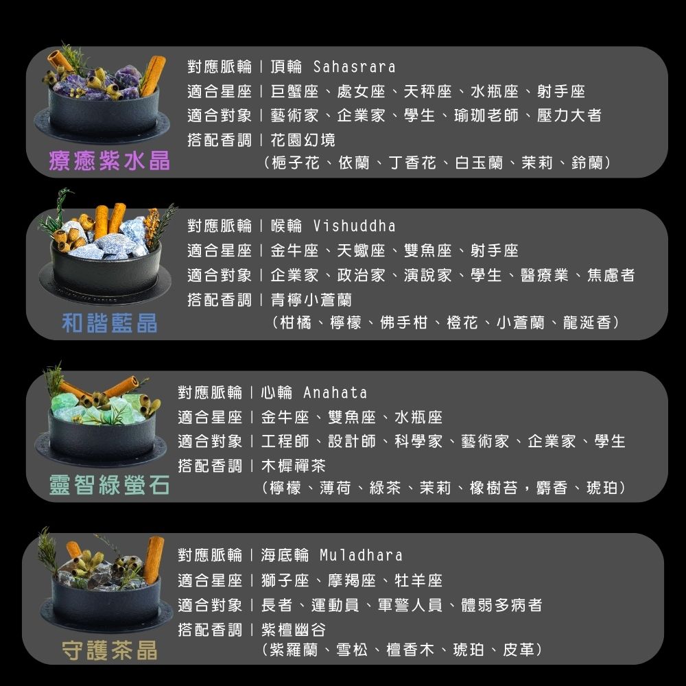 結合水晶能量象徵與空間香氛體驗,讓祝福不只是一句話,而是一份能被看見、被聞到、被擺放的生活儀式。
