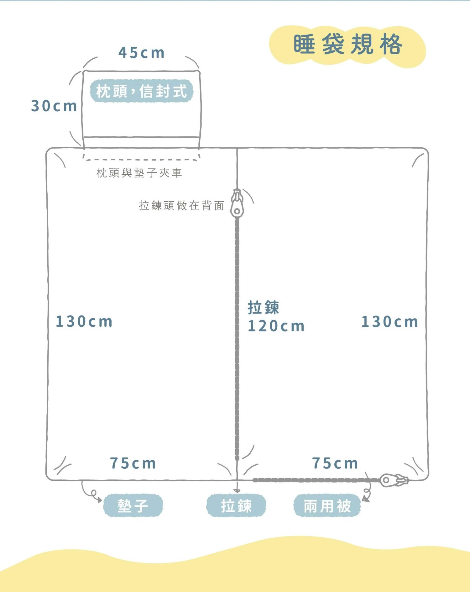*拉鍊設計在睡墊背面,不會卡卡