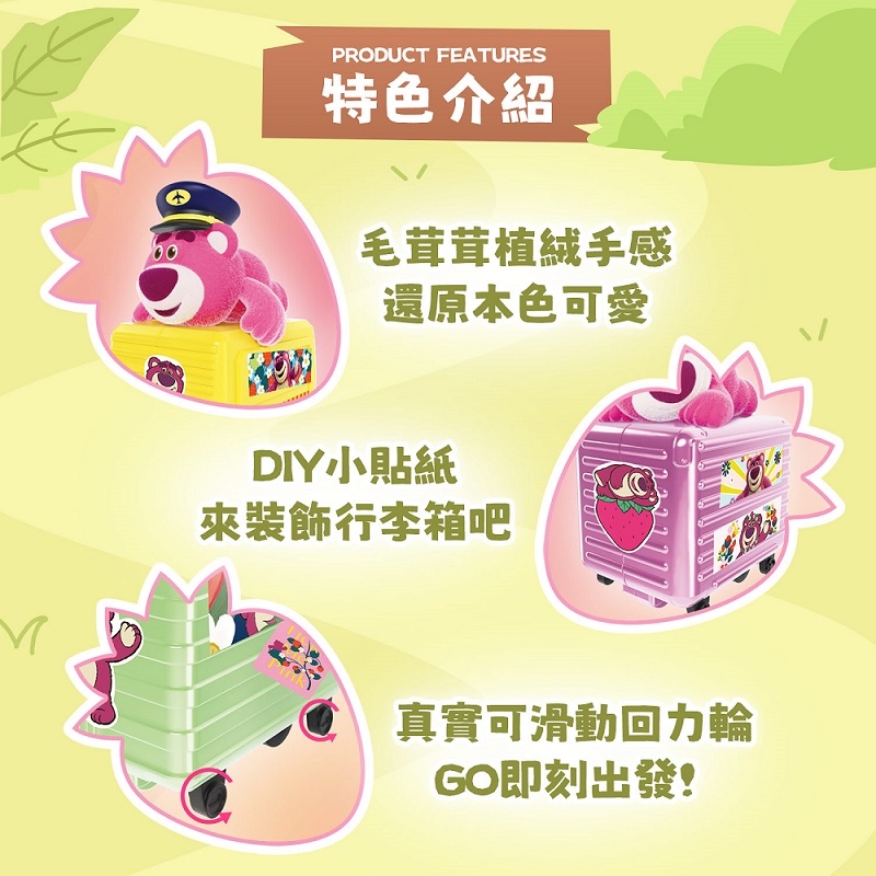 Disney 熊抱哥行李箱毛茸茸植絨材質,手感超療癒附贈DIY貼紙,打造專屬行李箱真實可滑動回力輪,隨時準備出發