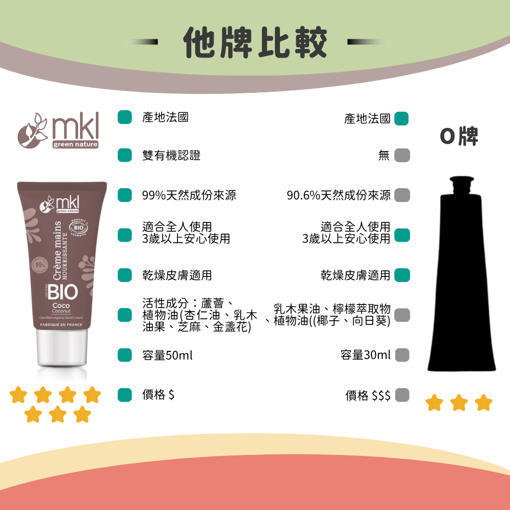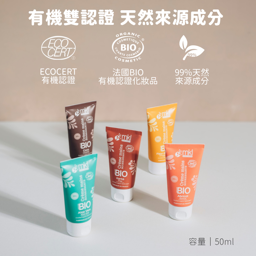 商品名稱:MKL Green Nature 有機認證護手霜 雙入組合主要成分:金盞花萃取物、乳木果油、椰子油、蘆薈、芝麻油、杏仁油、維他命E功 能:手部滋潤容 量:30ml