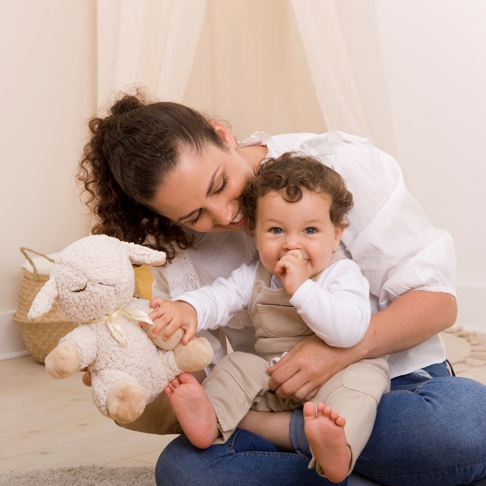 柔軟安撫布偶,結合白噪音助眠與舒緩旋律功能,幫助寶寶安心入睡、建立睡眠儀式。