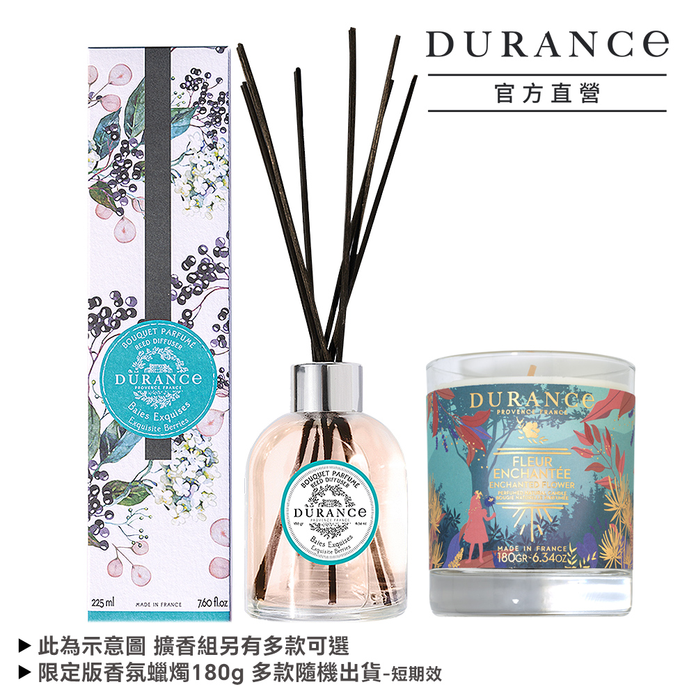 商品名稱:【DURANCE朵昂 】室內微光・療癒香氛雙入組-多款可選(擴香225ml+限定版蠟燭180g)